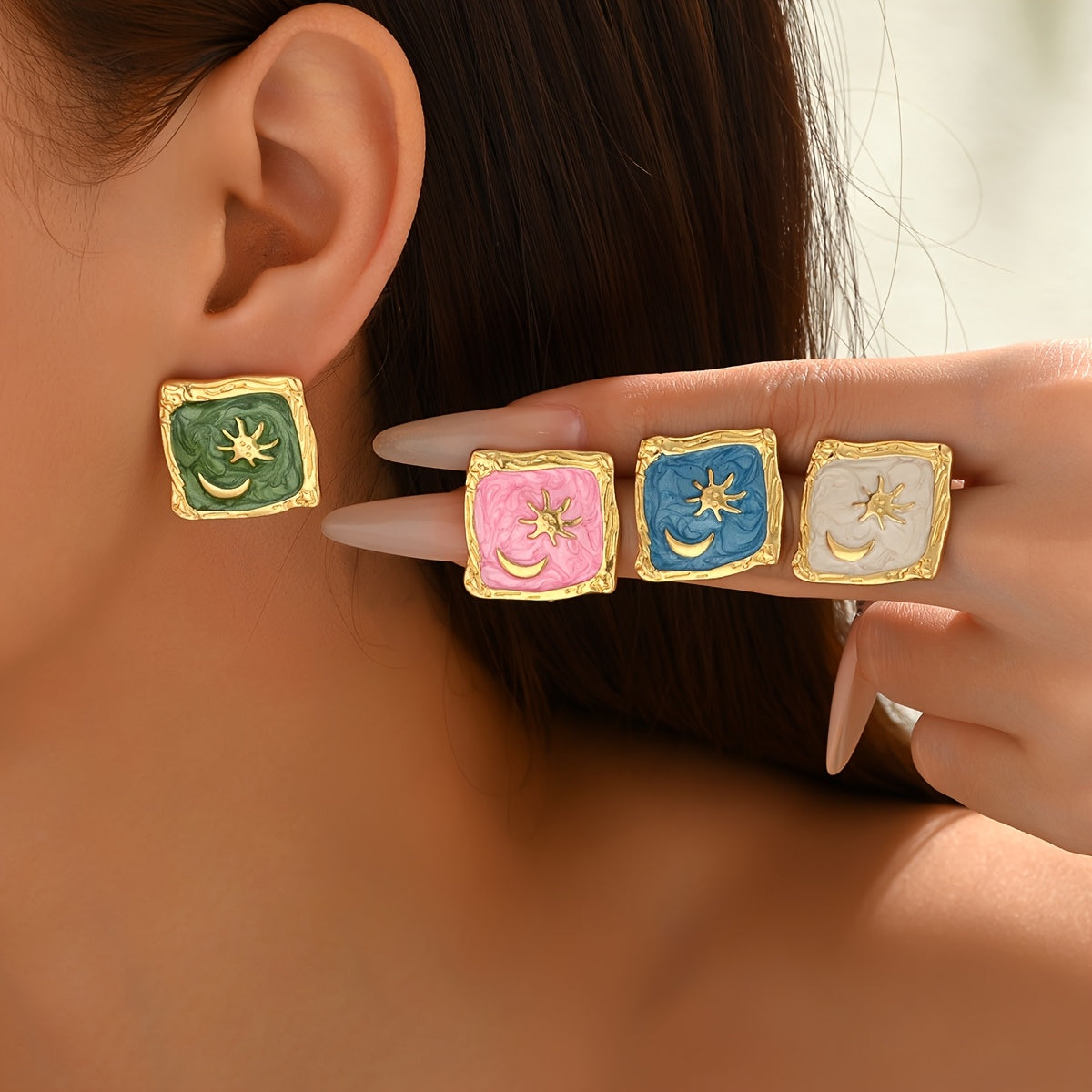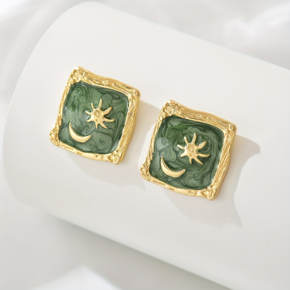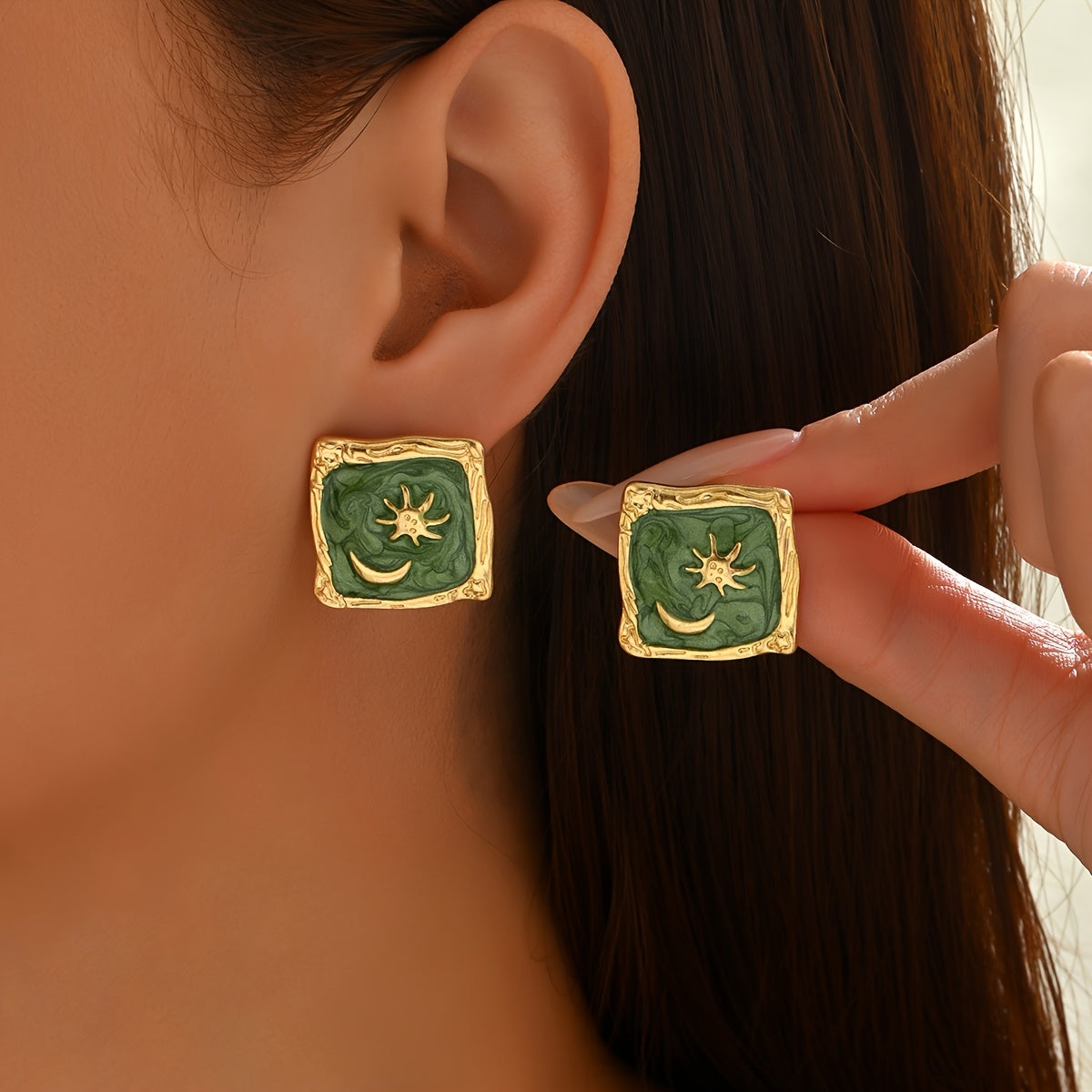 Elegant vintage earrings with a unique painting effect and glazed finish, perfect for adding a touch of Western charm to your look.