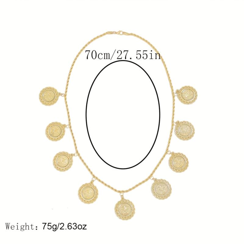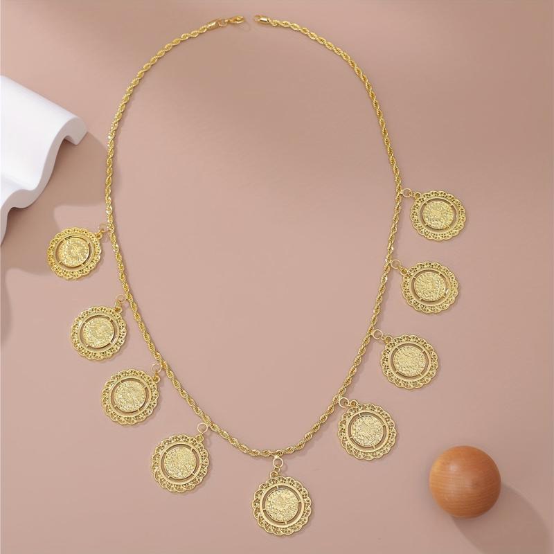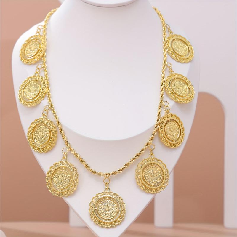 Vintage Gold Plated Ottoman Coin Pendant Necklace Women's Jewelry