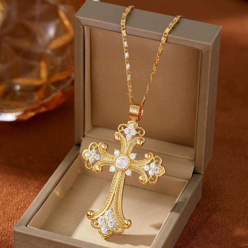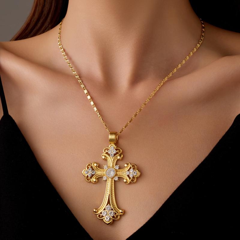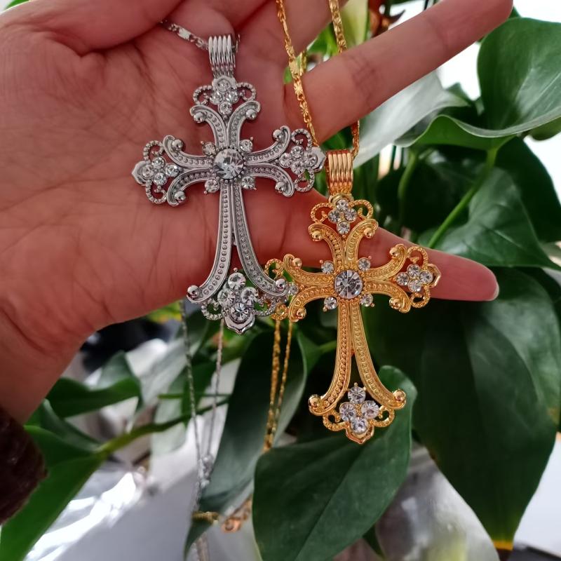 Express your pride with this vintage cross pendant necklace featuring synthetic gemstones. Perfect for daily wear or special occasions year-round.