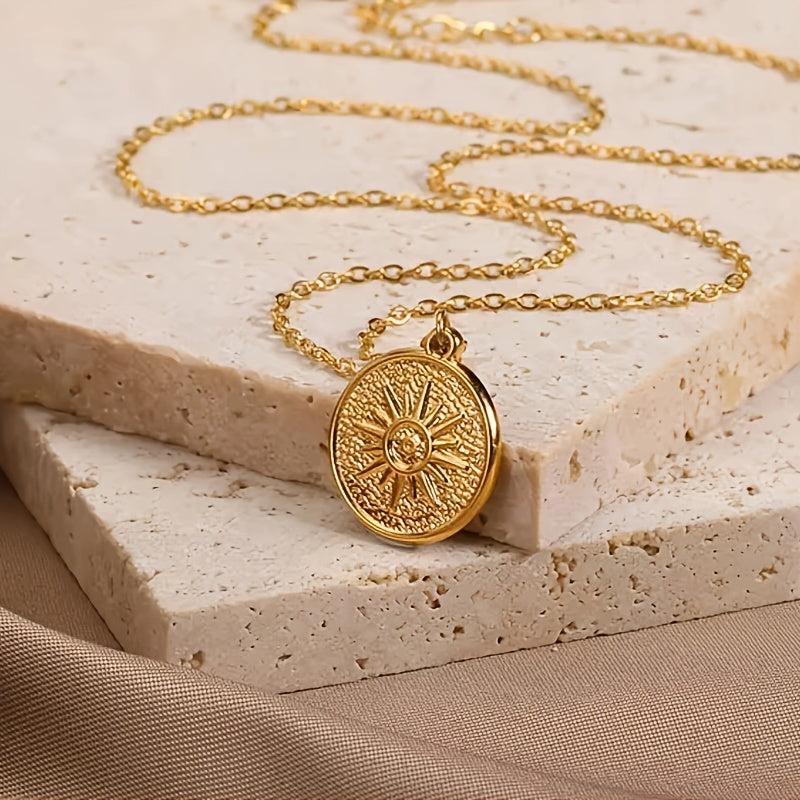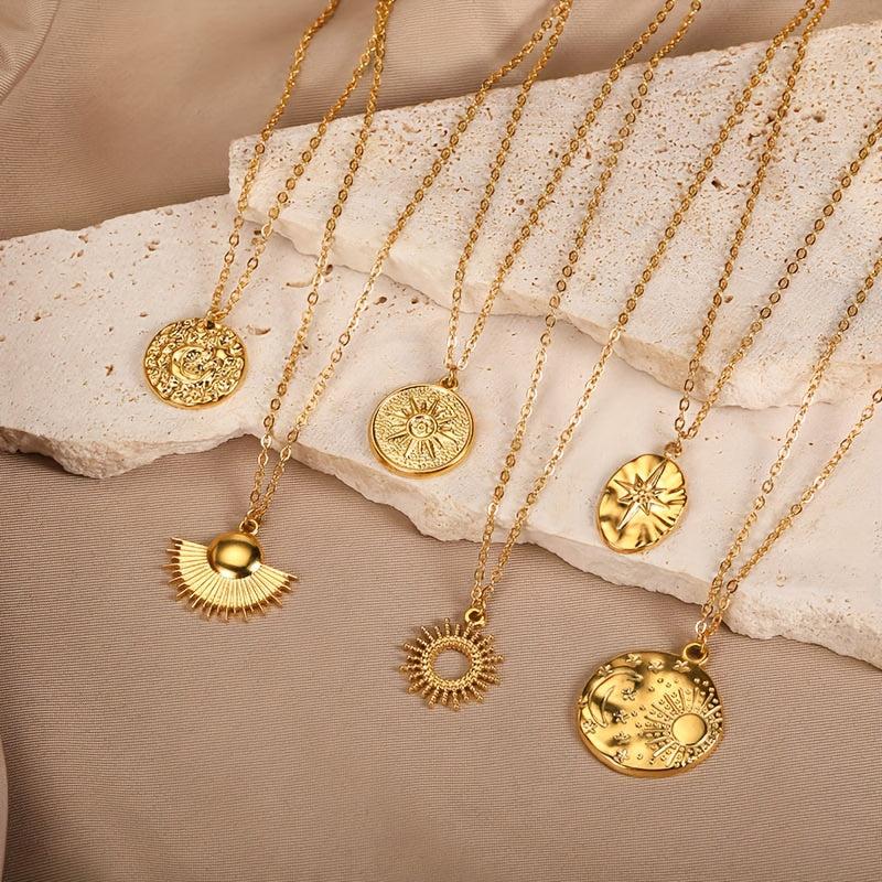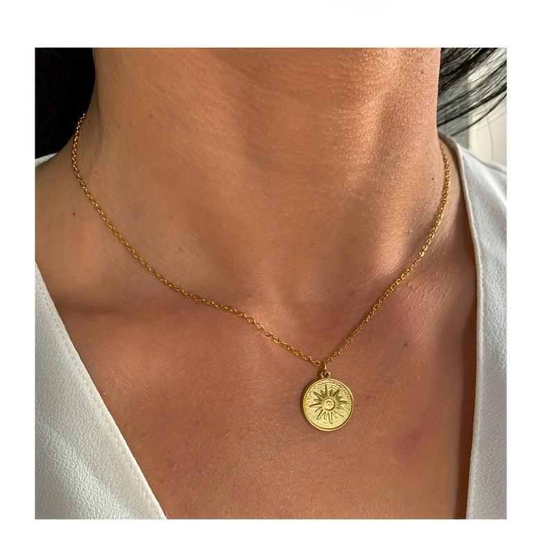 Elegant European and American style coin necklace made of lightweight titanium steel. Perfect for high-end parties.