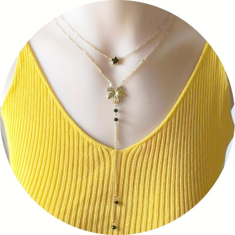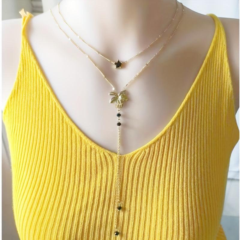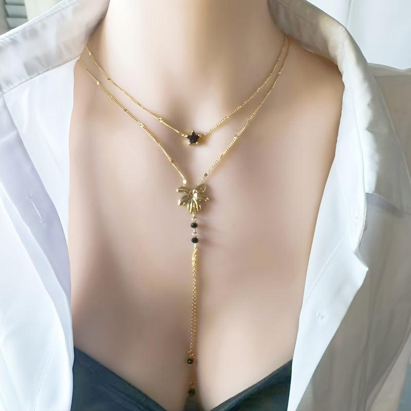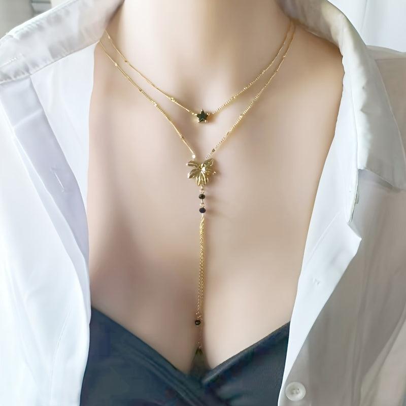 Vintage Golden Star Pendant Necklace with Zirconia Accents