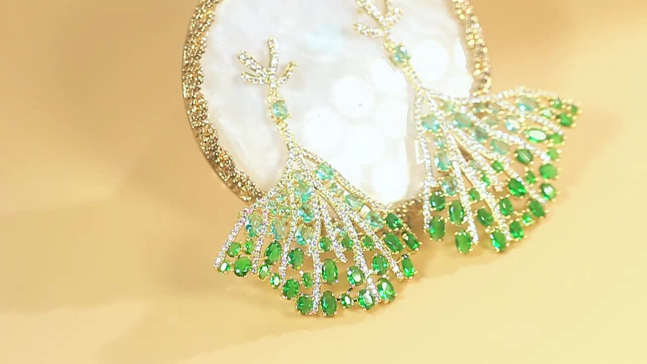 • Long leaf-shaped design with green synthetic zirconia
