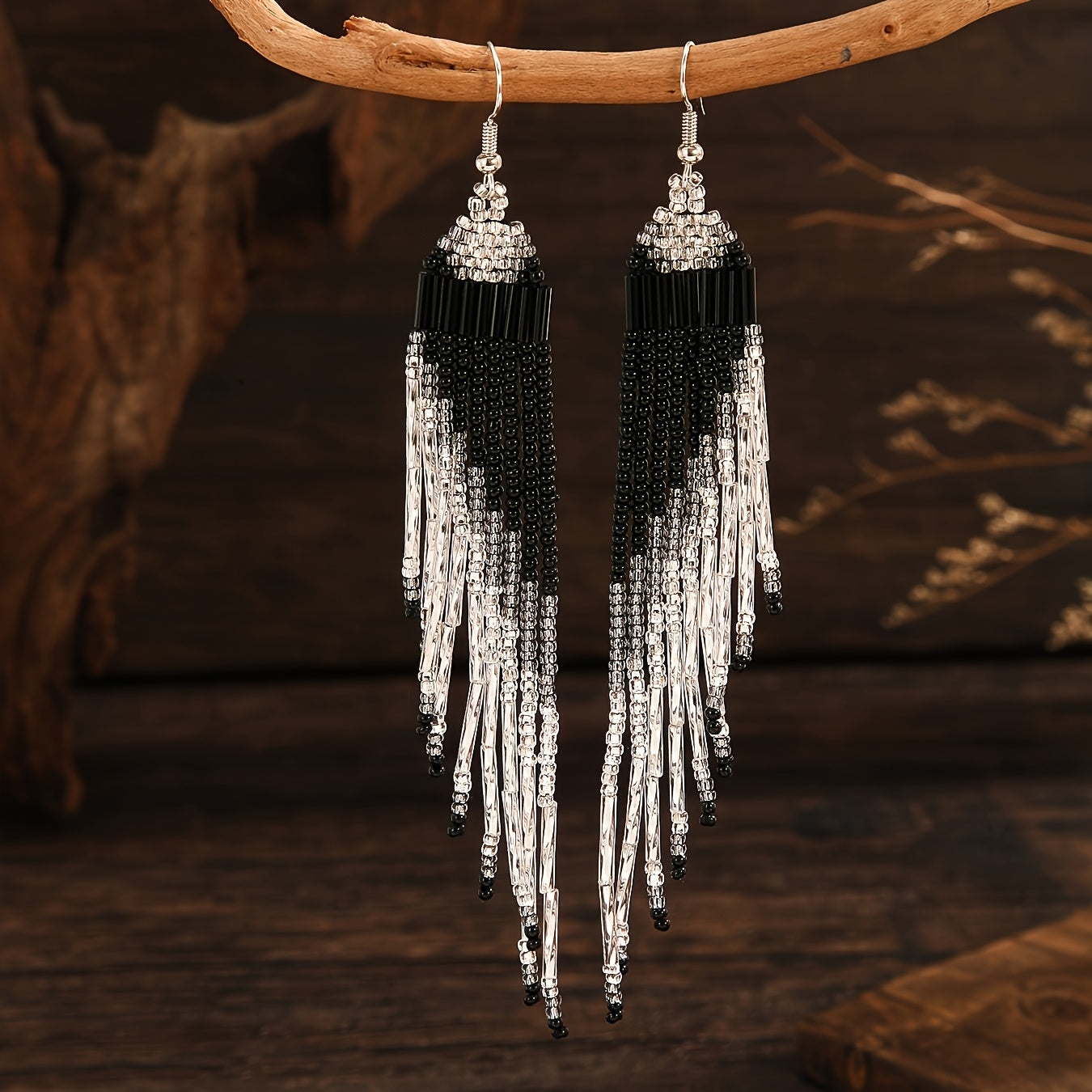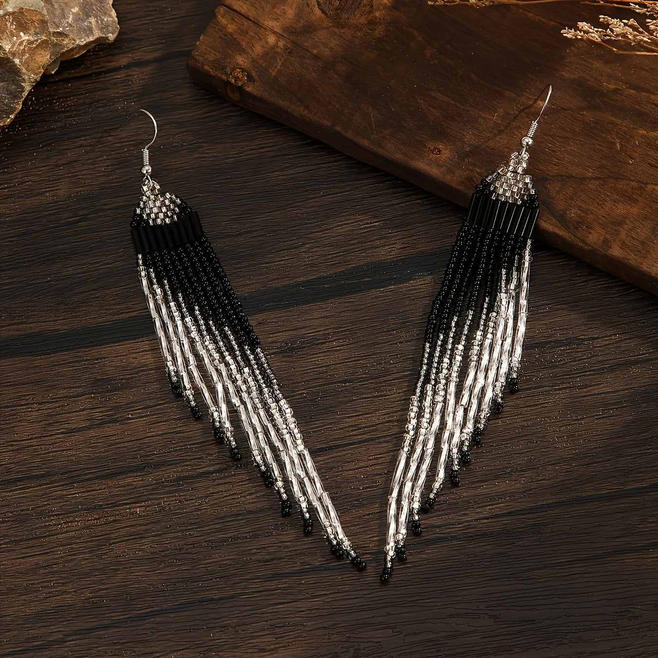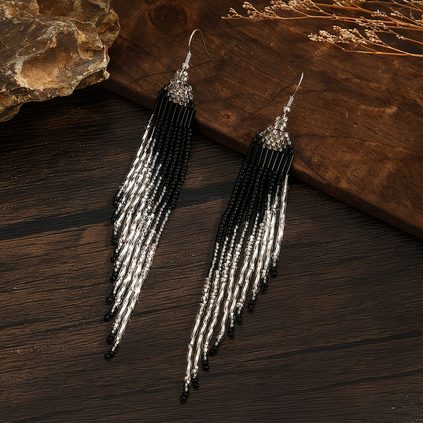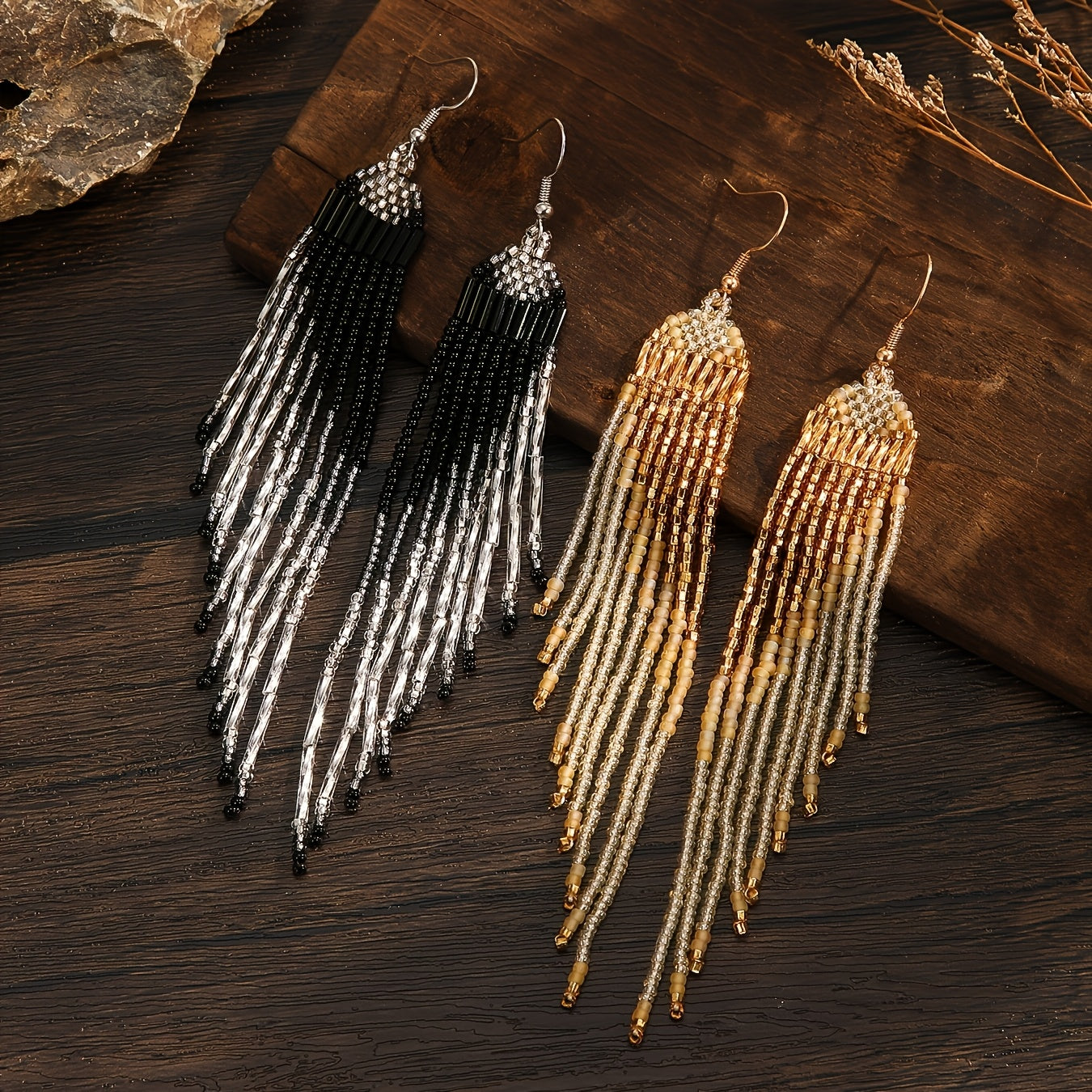 These bohemian beaded tassel earrings feature a heart-shaped design with golden glass seed beads. They are ideal for daily wear or special occasions. Perfect for Mother's Day or as a gift for a loved one.