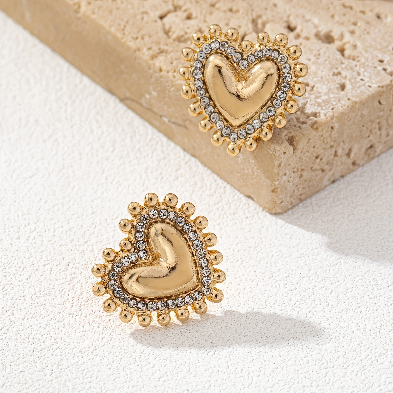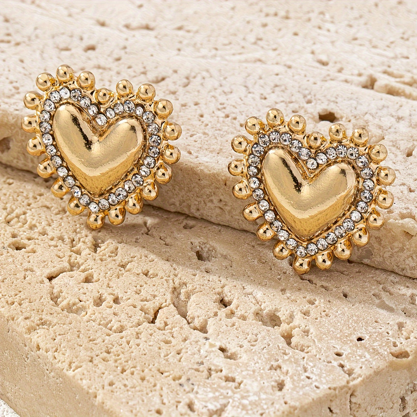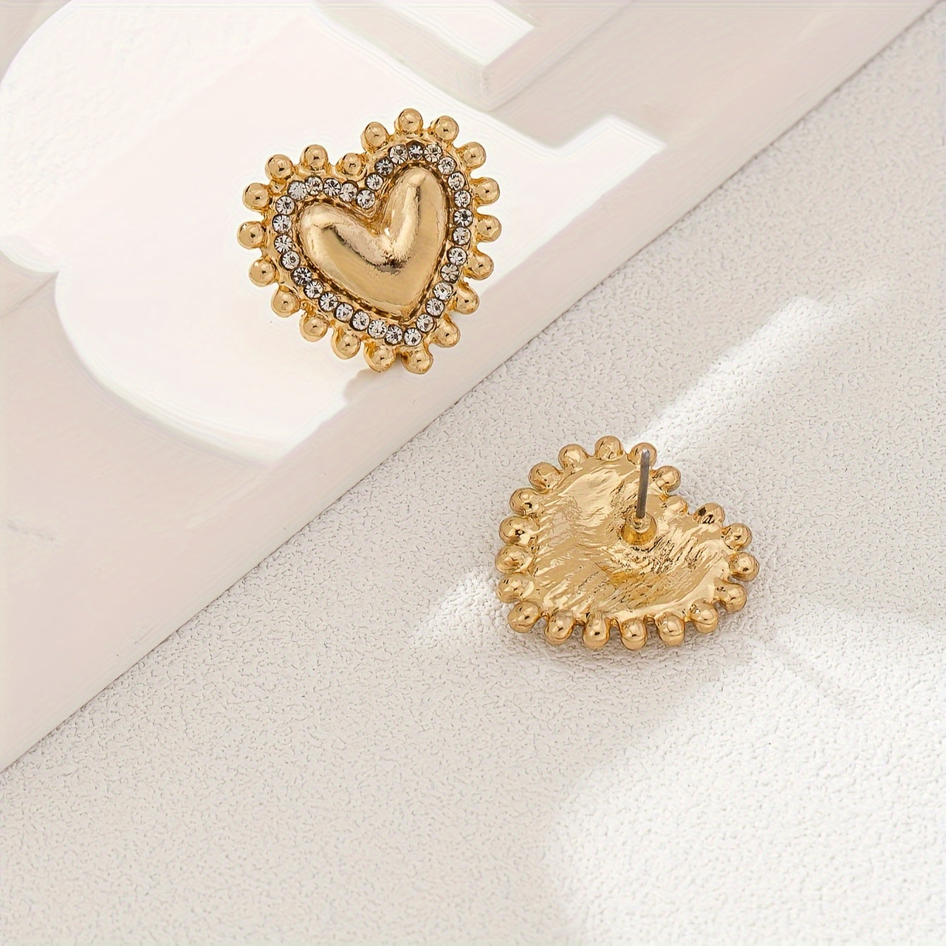 Add a touch of sparkle to your ensemble with these heart-shaped stud earrings. Made with high-quality zinc alloy and featuring dazzling rhinestones, these earrings are ideal for daily wear and special occasions.