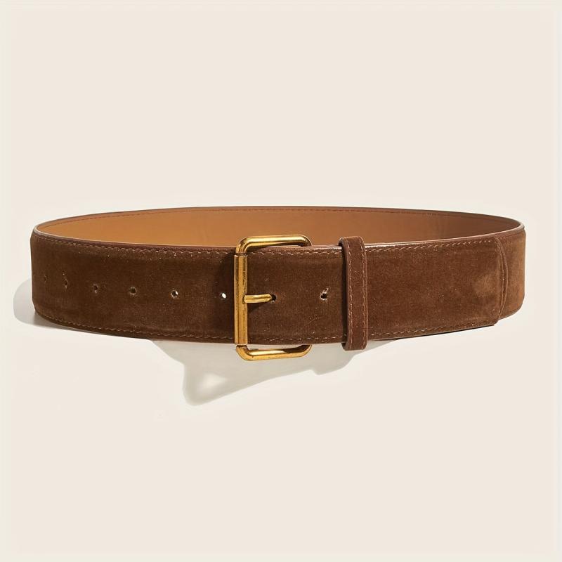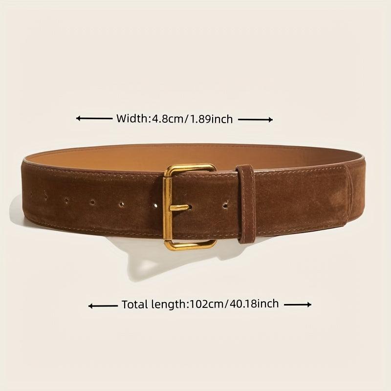 Elevate your outfit with this stylish wide brown belt featuring a golden square buckle. Perfect for casual outings, evening dates, and festive occasions.