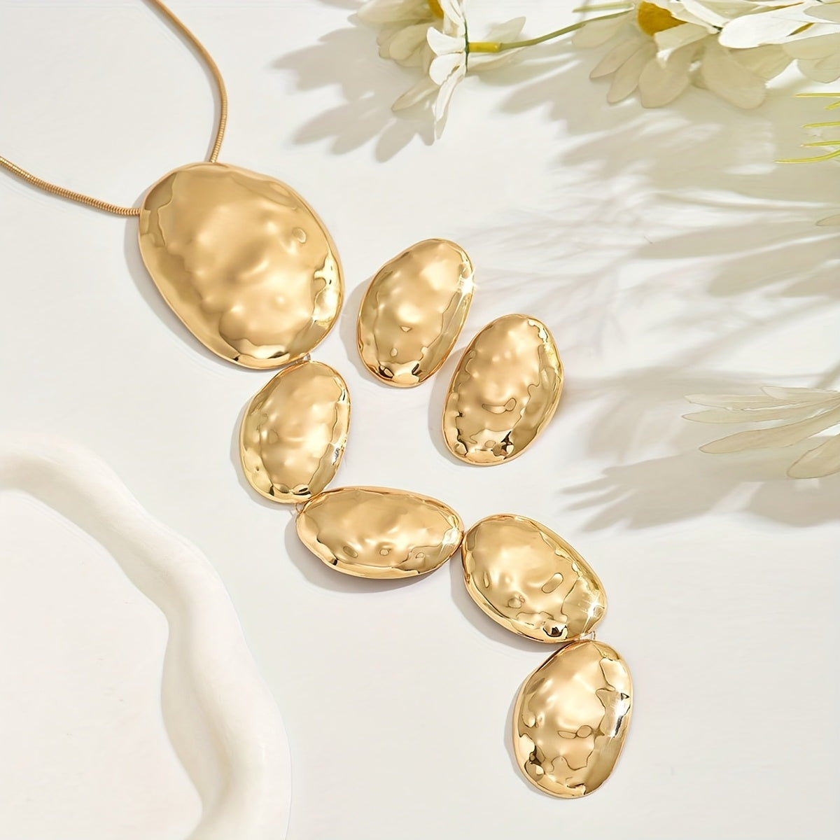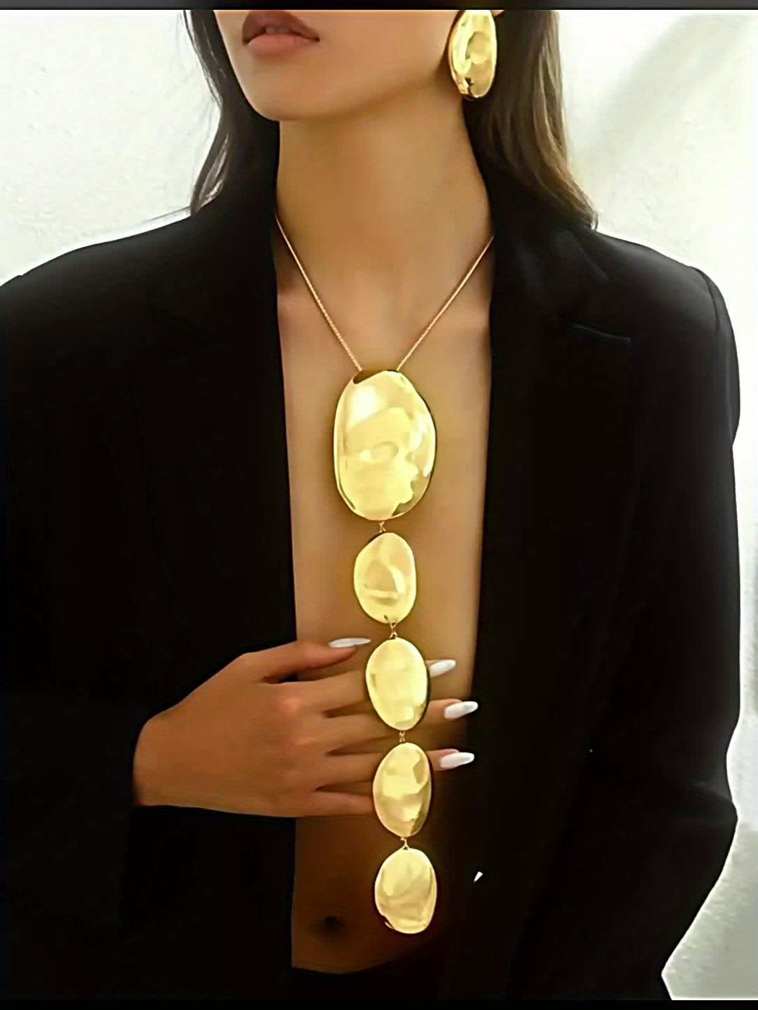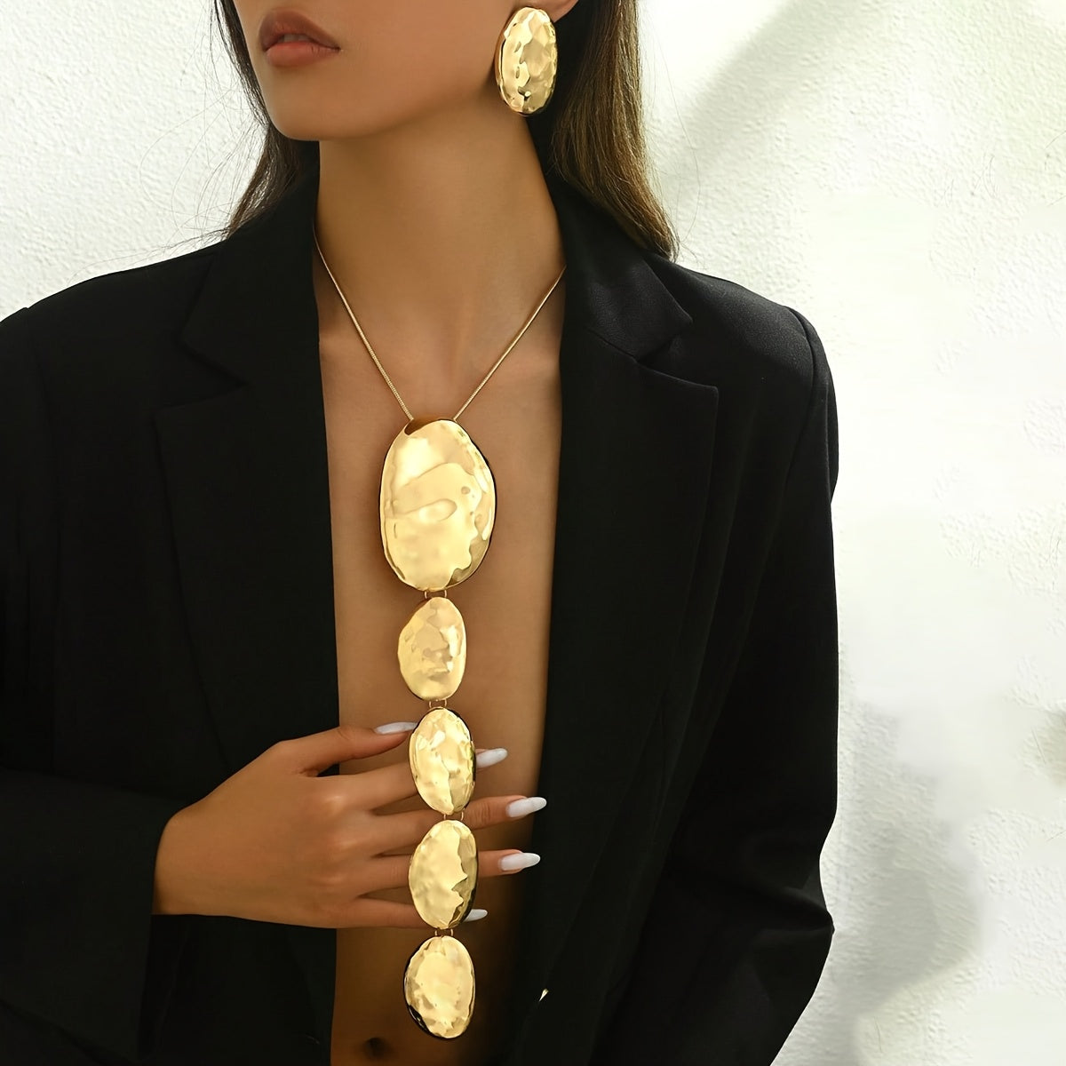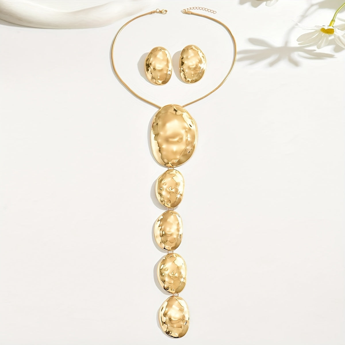 Vintage Iron Pendant Necklace & Earrings Set Geometric Oval Irregular Jewelry