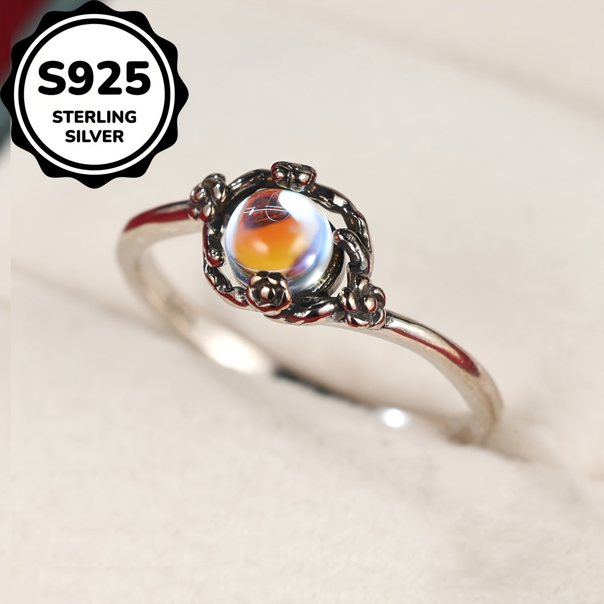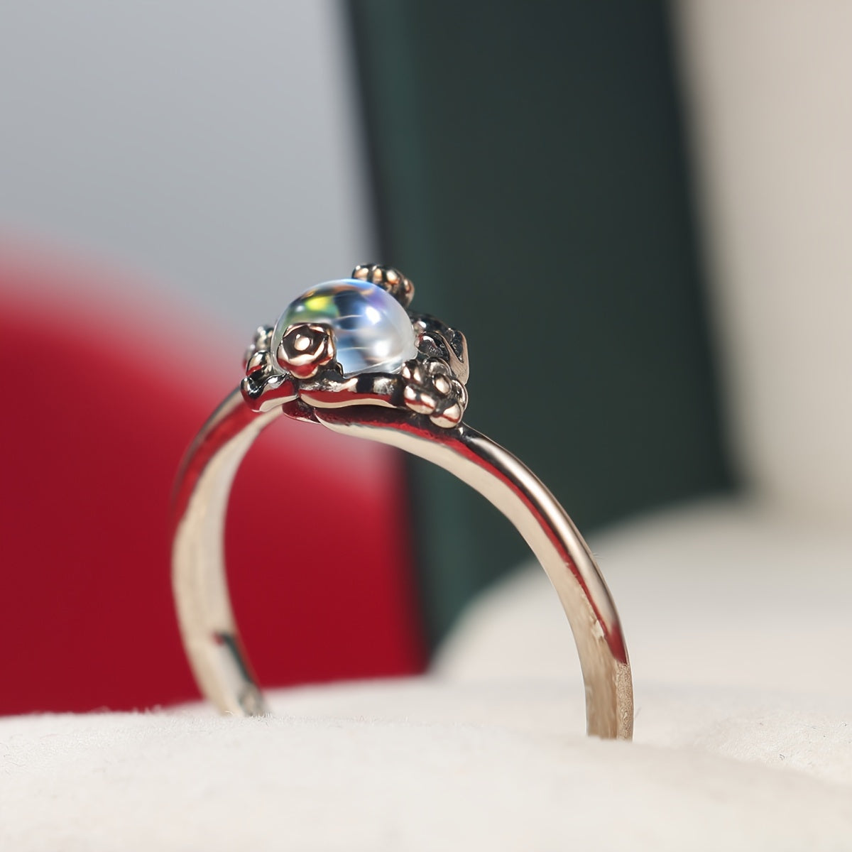 This stunning vintage lace moonstone ring is made of pure silvery S925 material. It is a unique and elegant accessory suitable for daily wear. The ring weighs 2.2g and features a beautiful moonstone centerpiece.