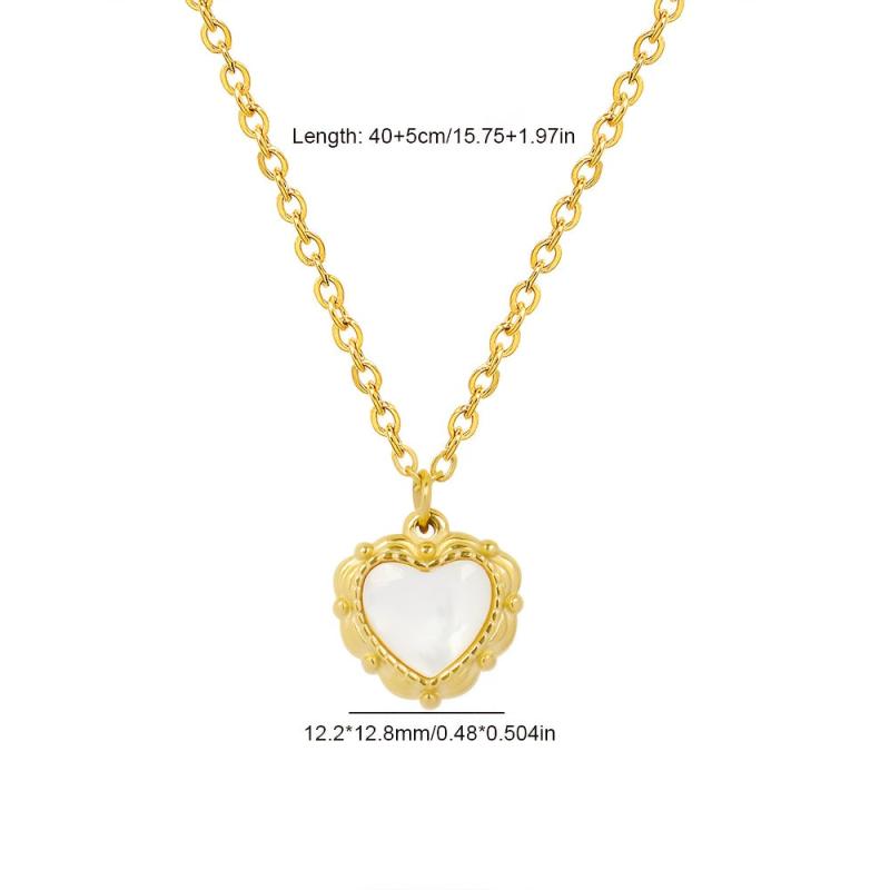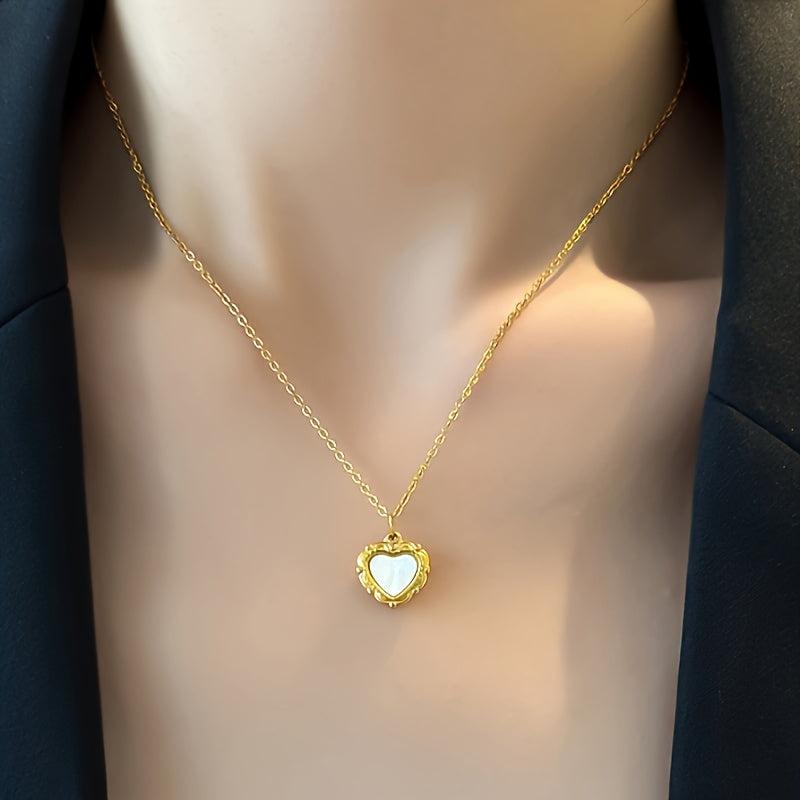 This stainless steel necklace features a vintage lace shell heart pendant, making it a versatile double-sided love charm perfect for any season. It is an ideal gift for women.