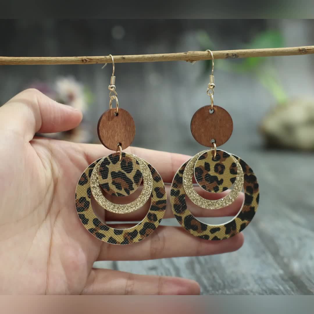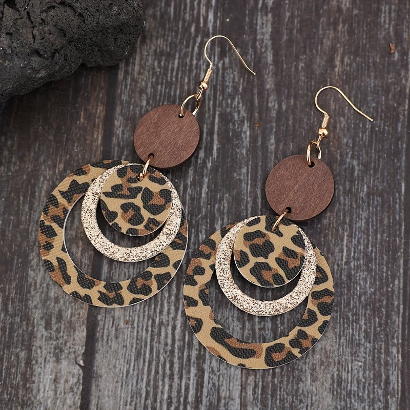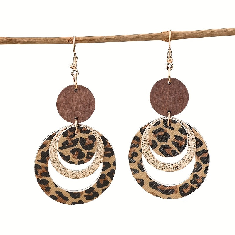 Add a touch of retro flair to your outfit with these stylish leopard print earrings. The layered design and spliced round shape make them a unique and fashionable accessory.