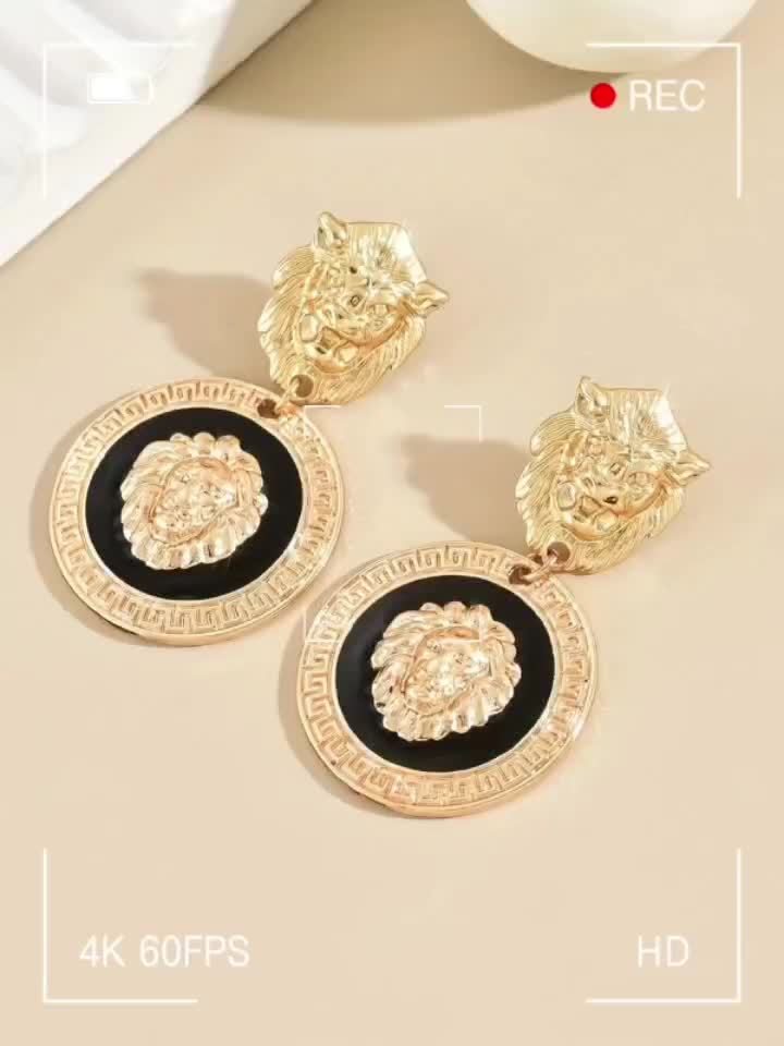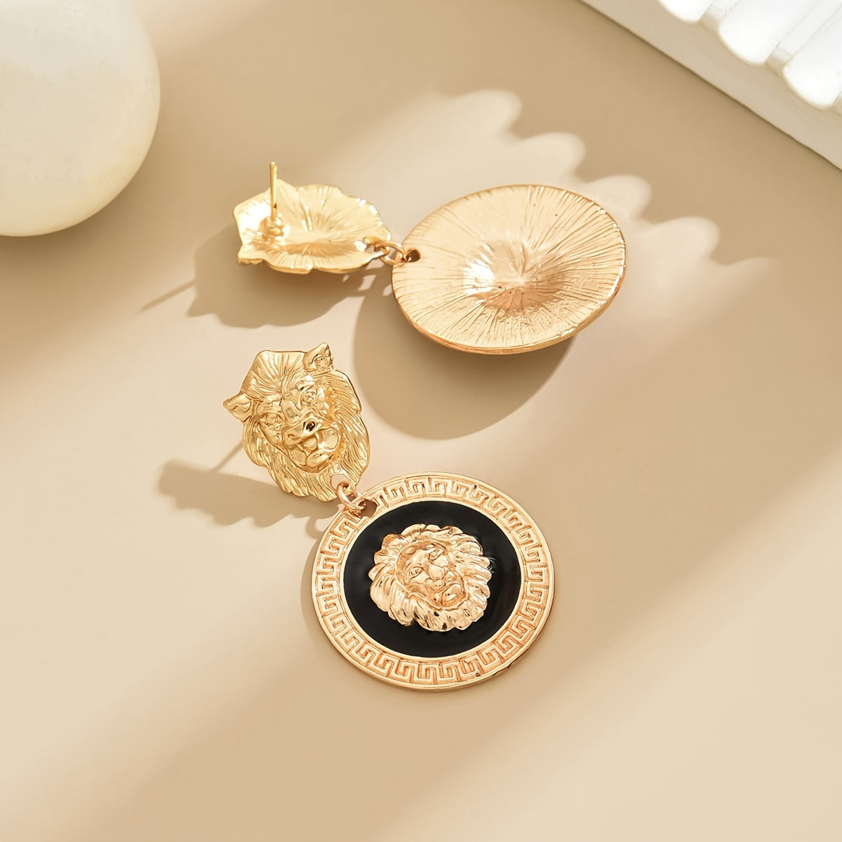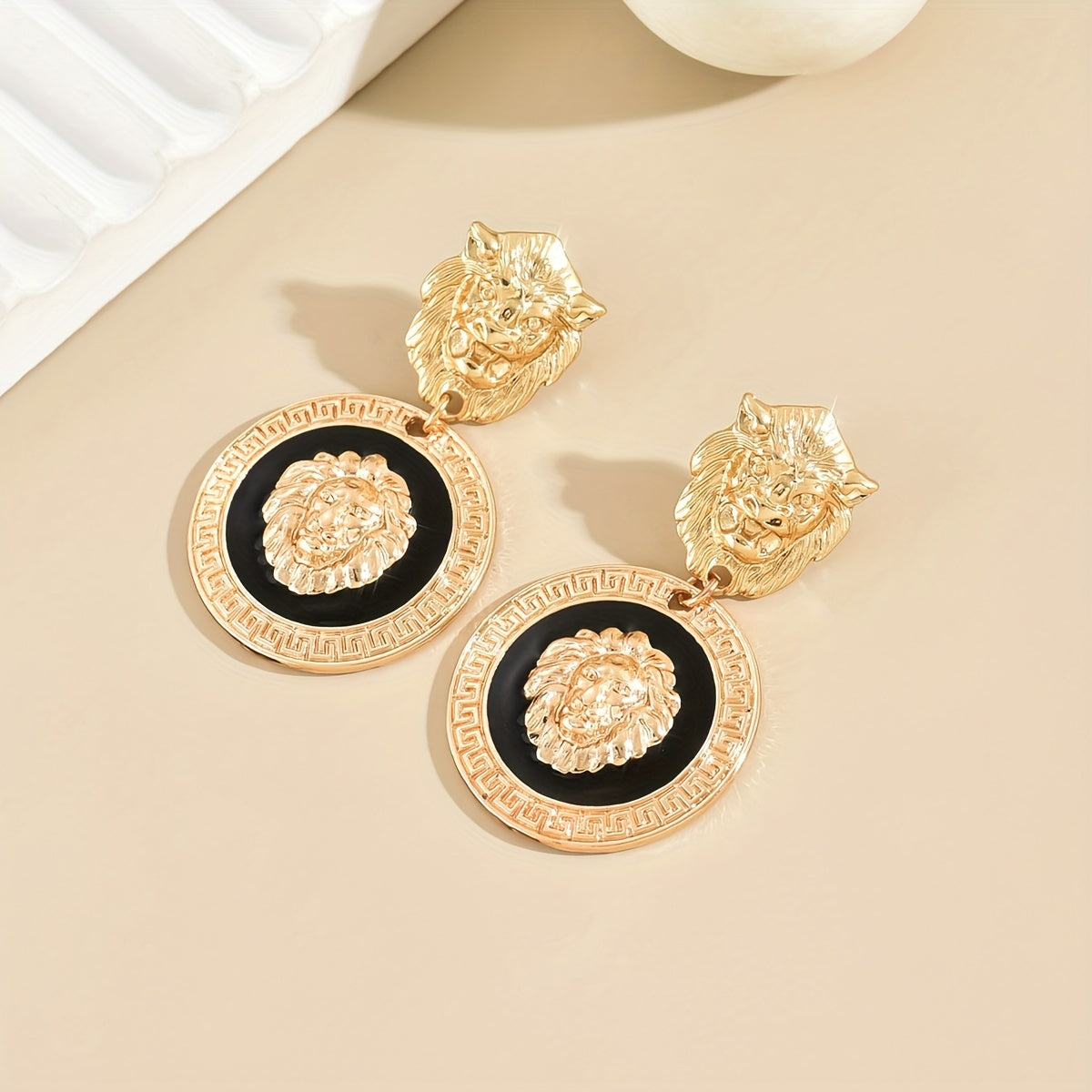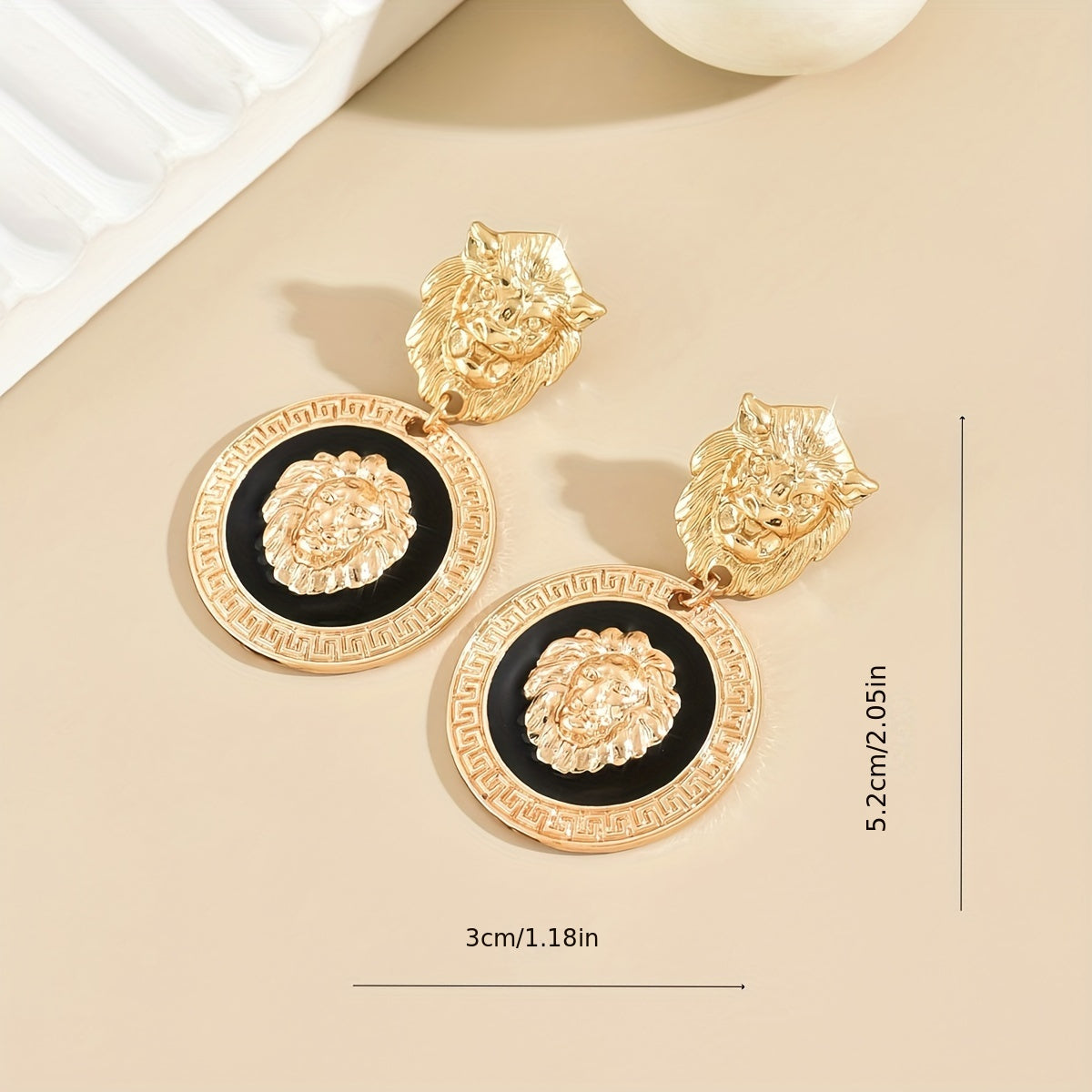 These Baroque-inspired earrings feature a lion totem design, crafted from zinc alloy with an iron ear needle. They have a glossy finish and are perfect for making a bold statement.