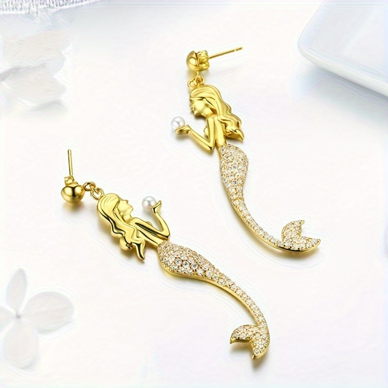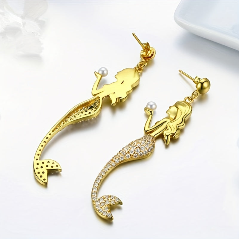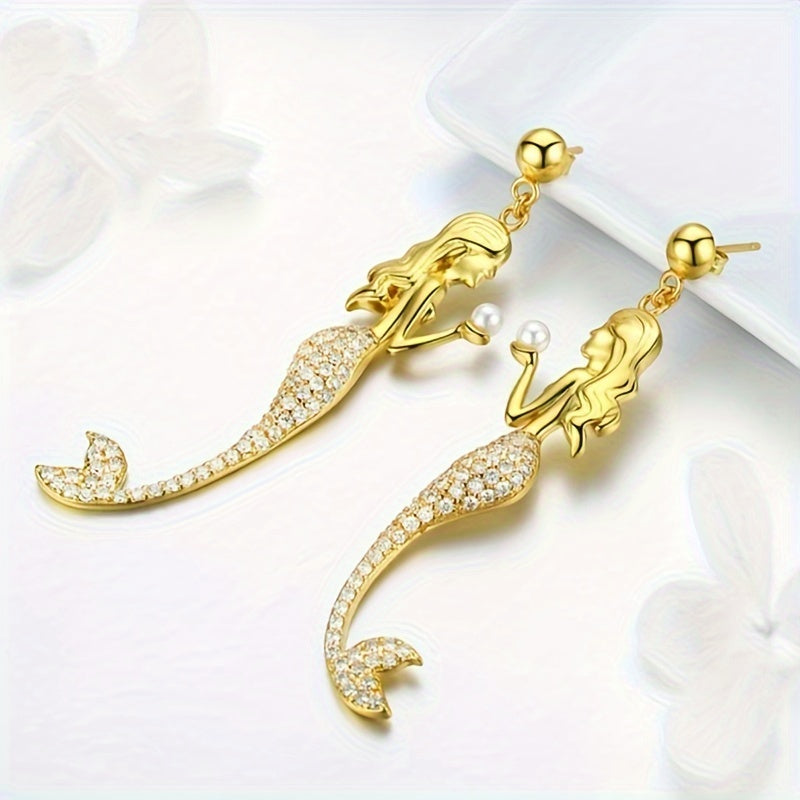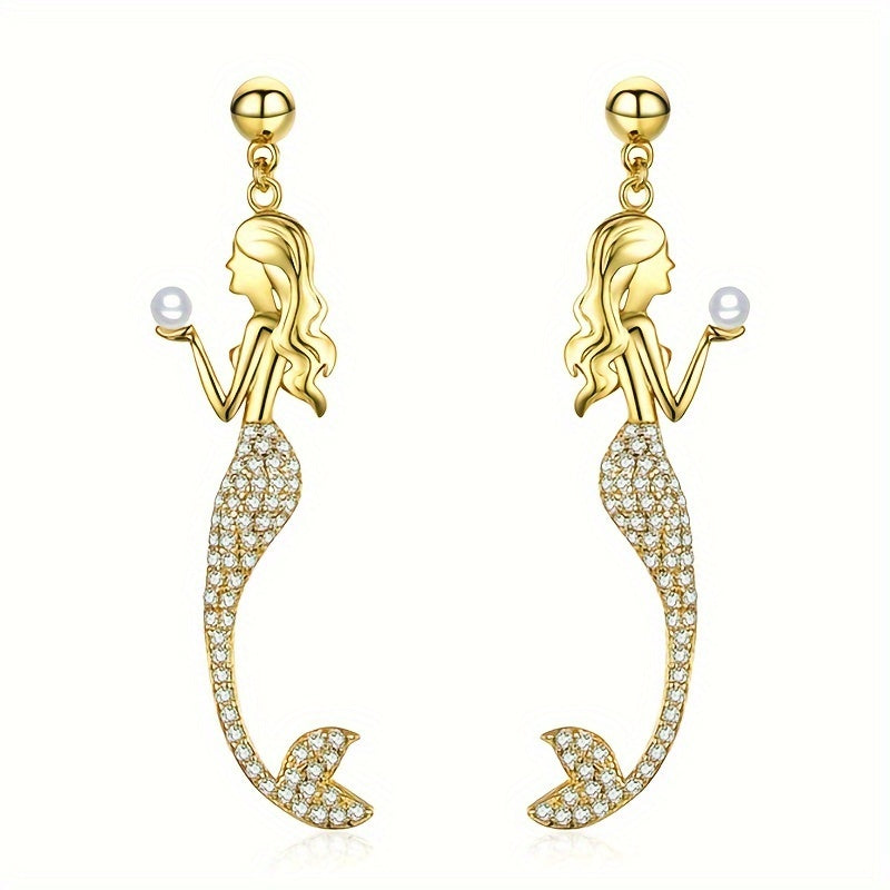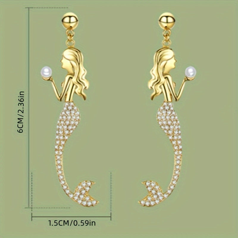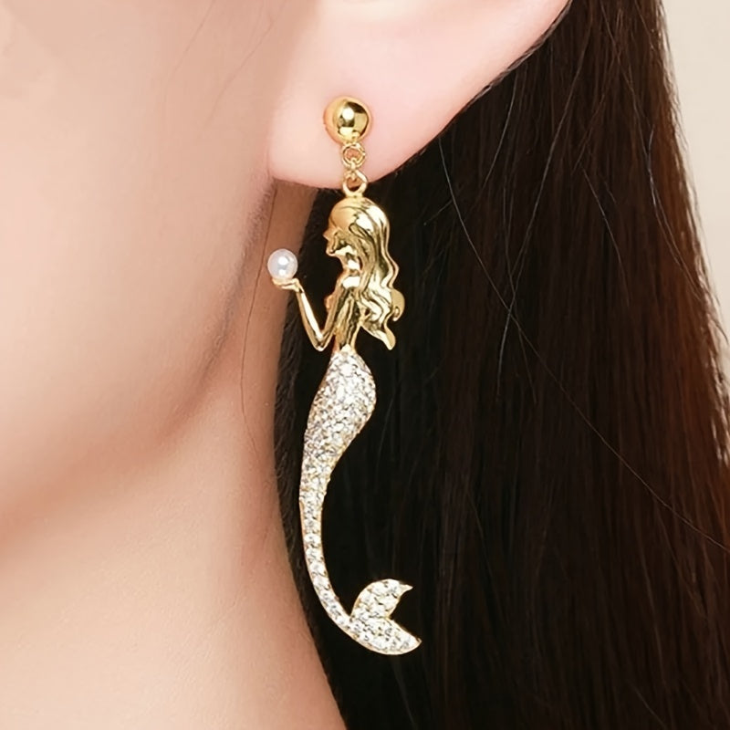 Exquisite mermaid earrings with faux pearls and synthetic gem embellishment. Made of zinc alloy, suitable for daily wear or party occasions.
