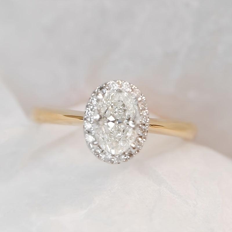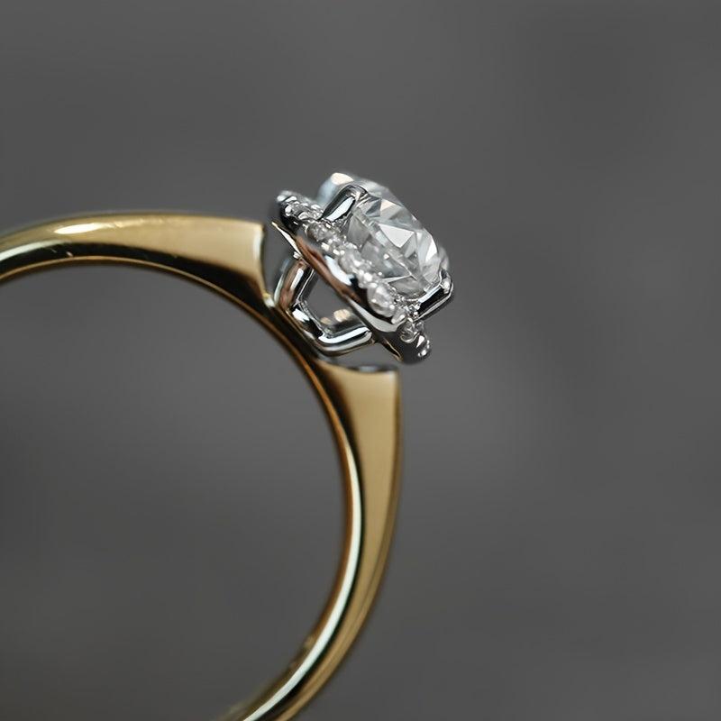 Stunning engagement ring featuring a sparkling oval cubic zirconia in a retro two-tone setting. Perfect for bridal proposals and special occasions.