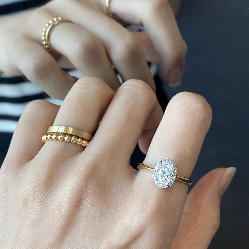 Vintage Oval CZ Two Tone Wedding Banquet Ring