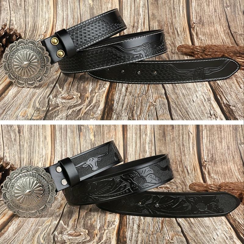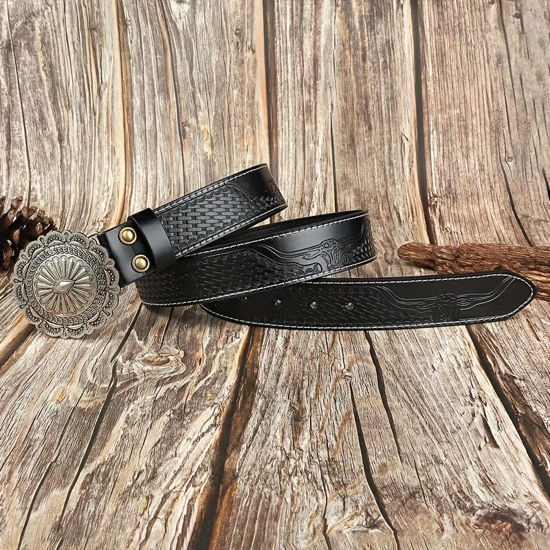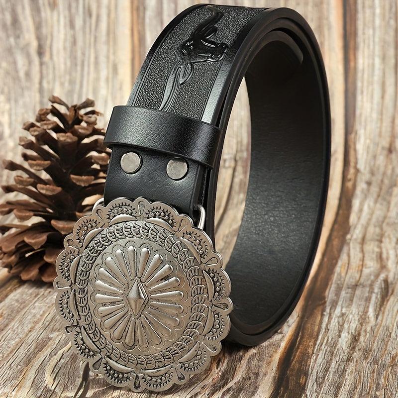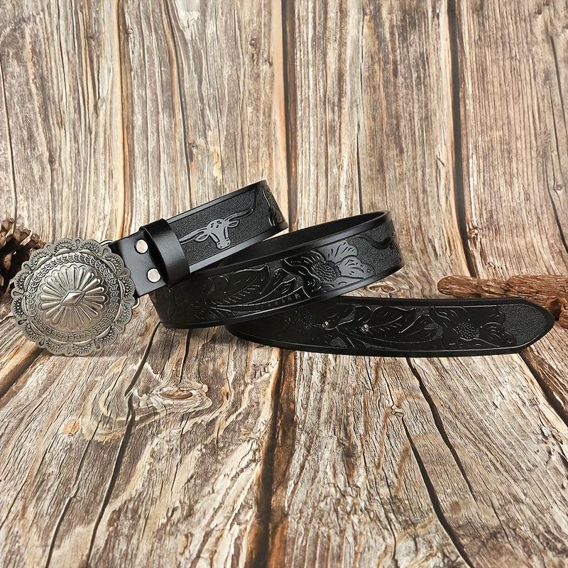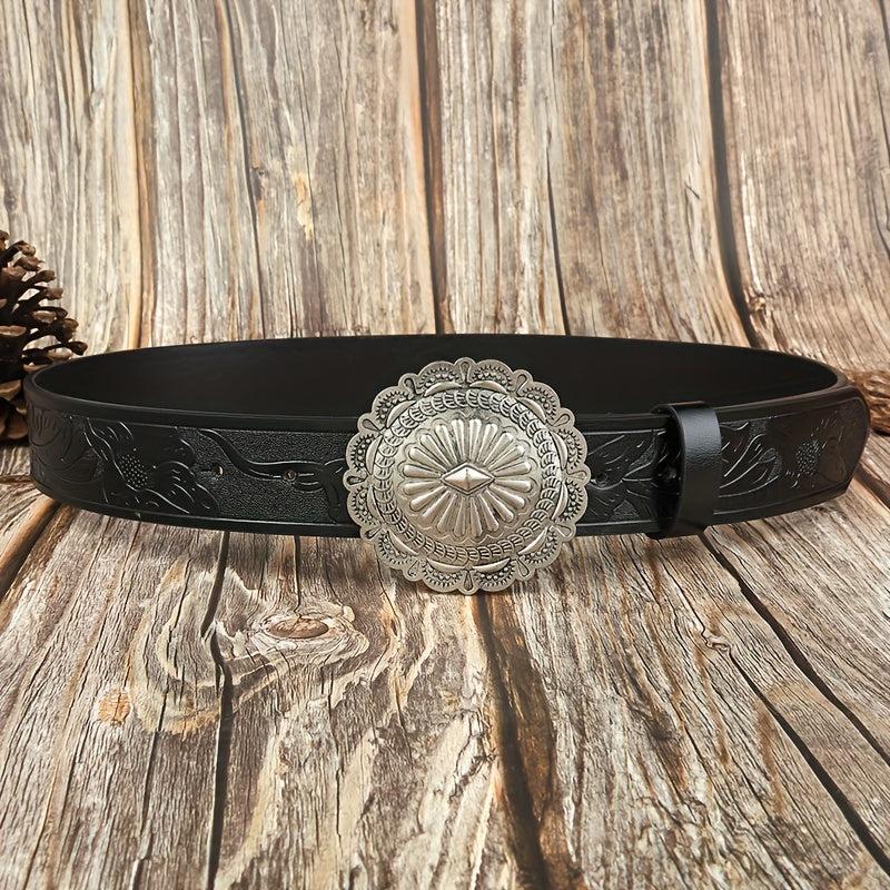 Embossed PU leather boho belt perfect for jeans or pants.