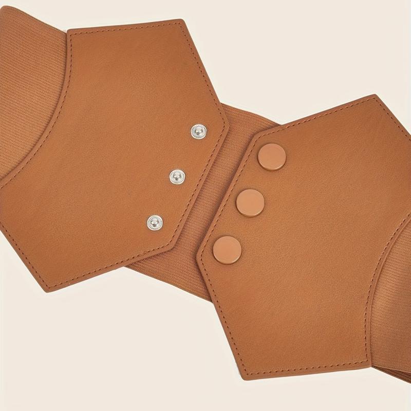 Vintage PU Leather Waist Cincher with Triple Button Closure