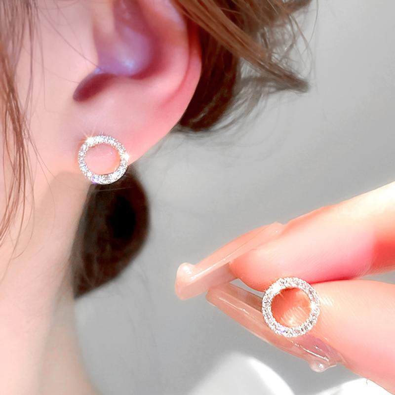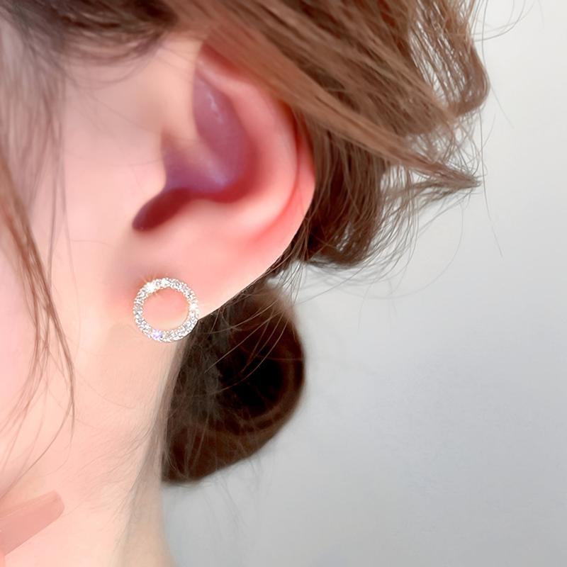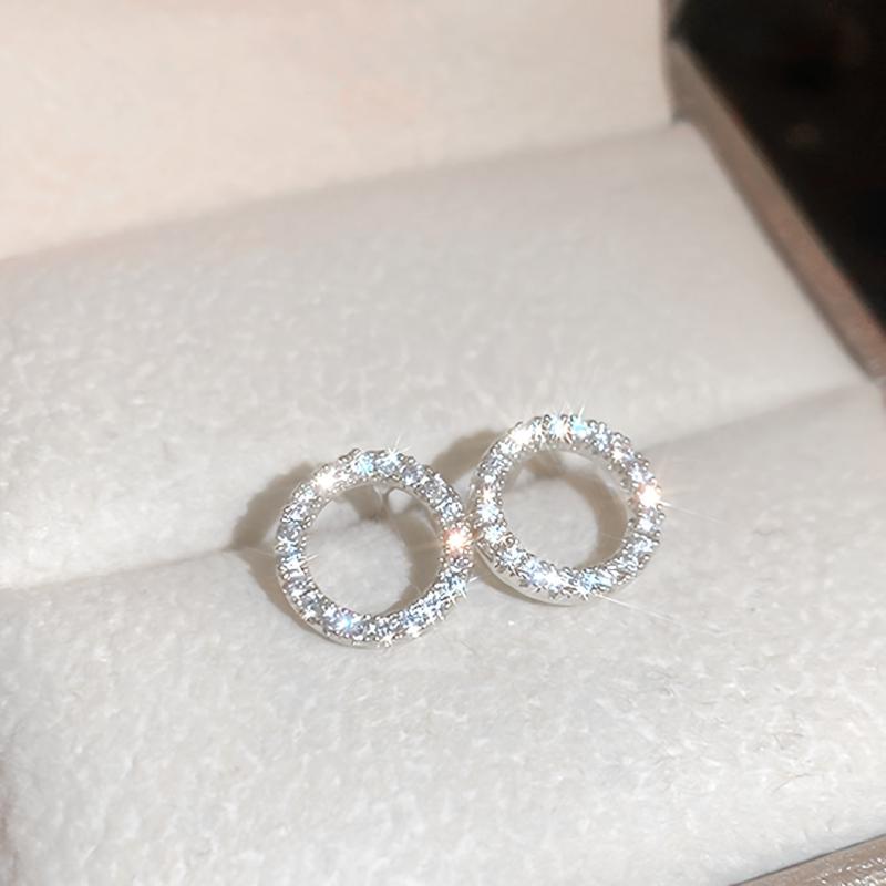 These elegant circle earrings feature sparkling rhinestones, made of high-quality alloy and stainless steel, perfect for daily wear or special occasions.