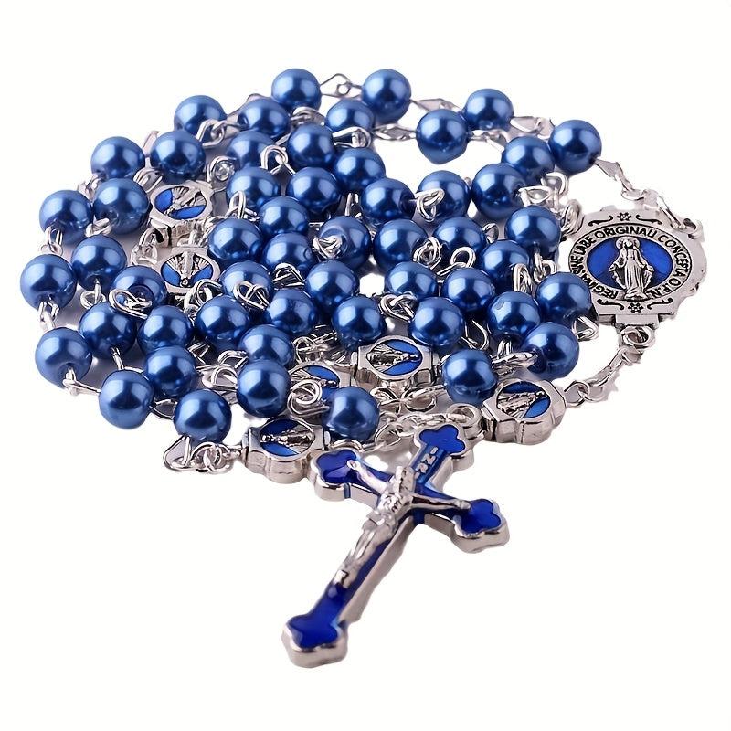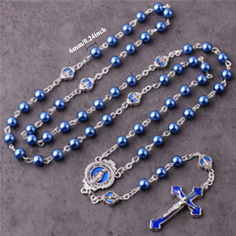 This vintage cross necklace features a royal alloy cross pendant on a rosary beads string. Perfect for adding a touch of timeless elegance to your look.