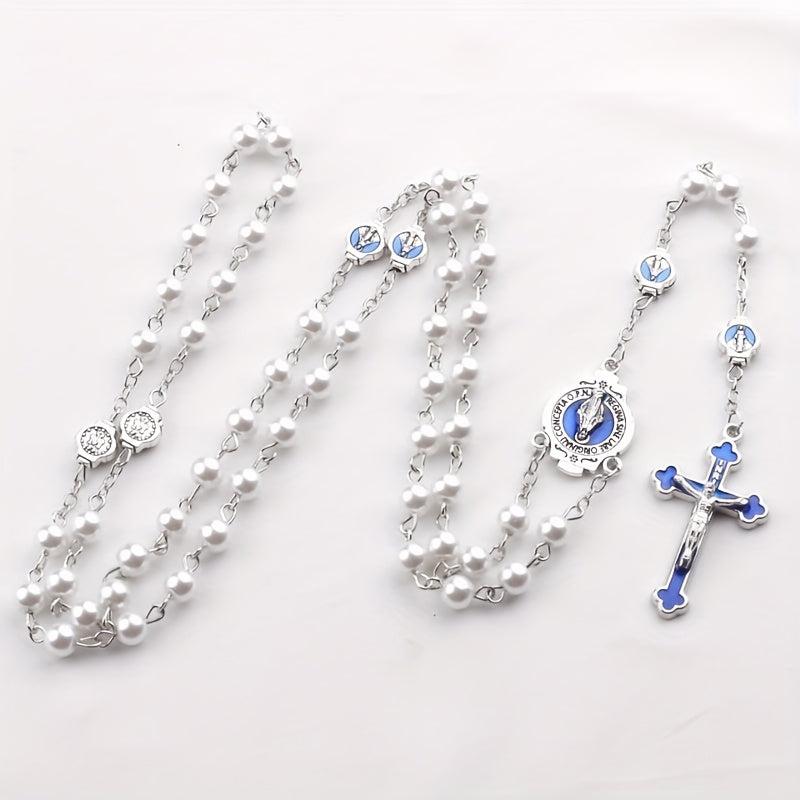 Vintage Royal Alloy Cross Pendant Rosary Beads Necklace