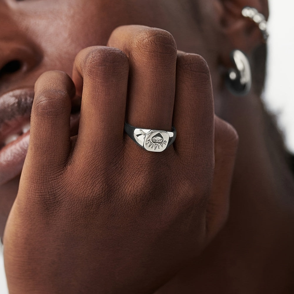 Delicate 925 silver ring with hip hop graffiti design, perfect stacking accessory.