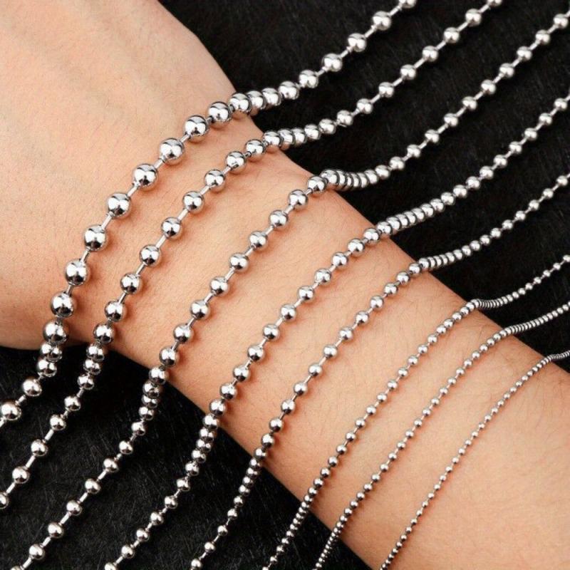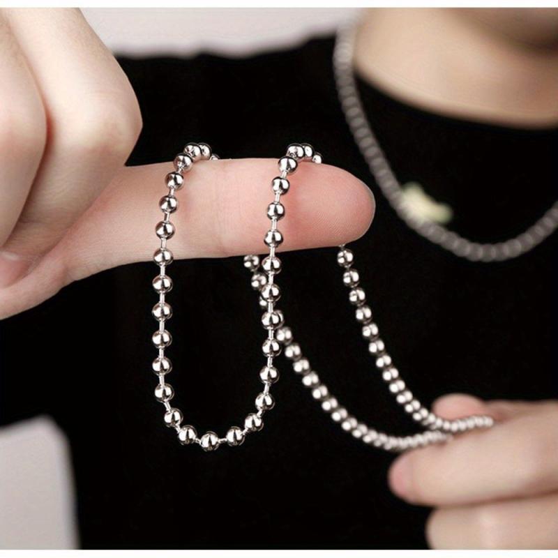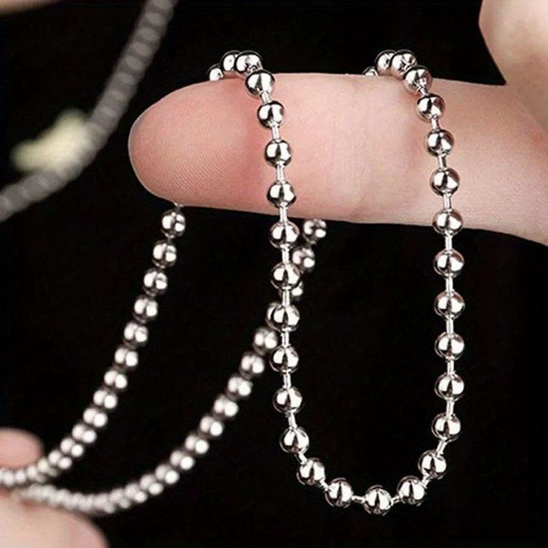 Vintage Stainless Steel Bead Necklace Classic Round Link Chain