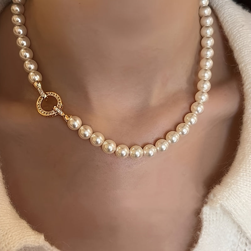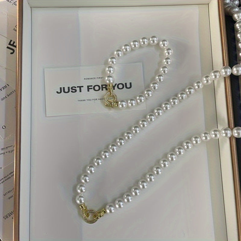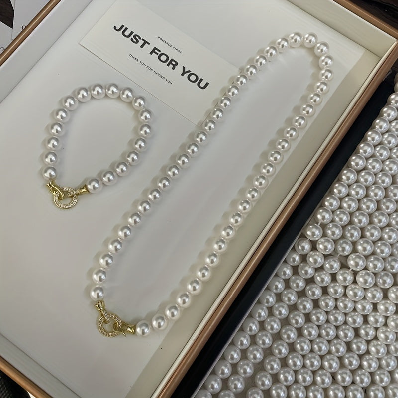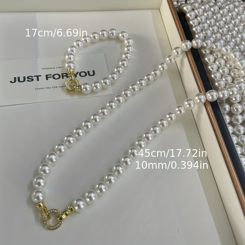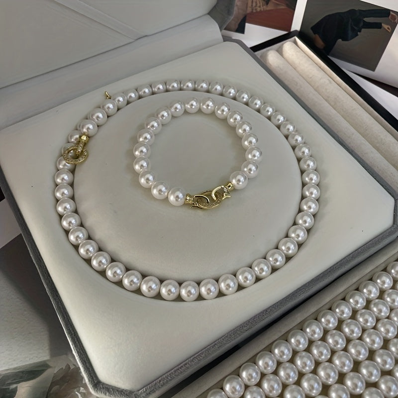 Elegant and timeless, this 10mm two-piece set features a glossy classic beaded necklace and bracelet for women. Perfect for daily wear or as a gift at banquets.