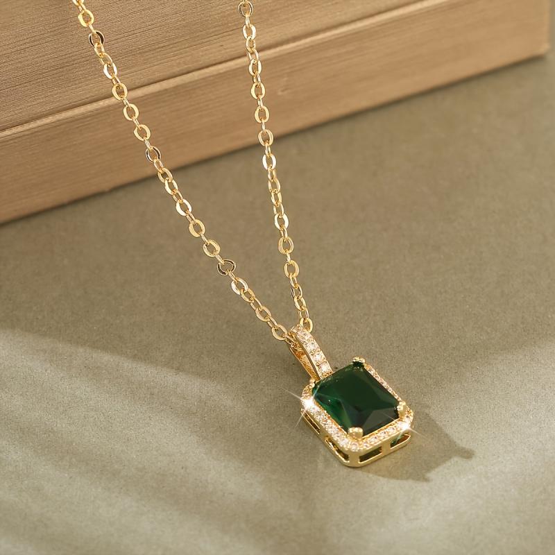 Elegant square-shaped pendant necklace crafted from copper with a synthetic emerald zirconia for women. Perfect for daily wear and gifting all season.