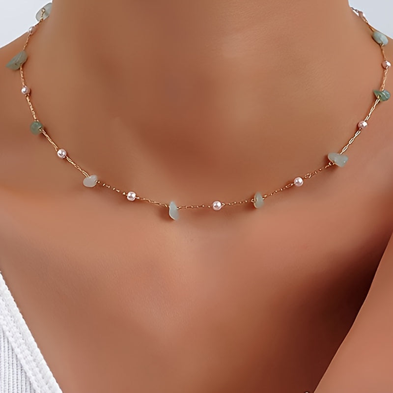 Elevate your look with this elegant necklace set featuring artificial crystal stones. The perfect accessory for any outfit.