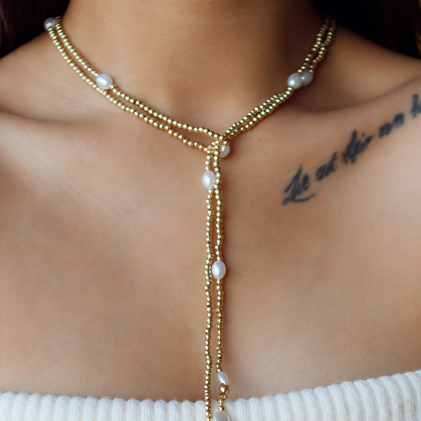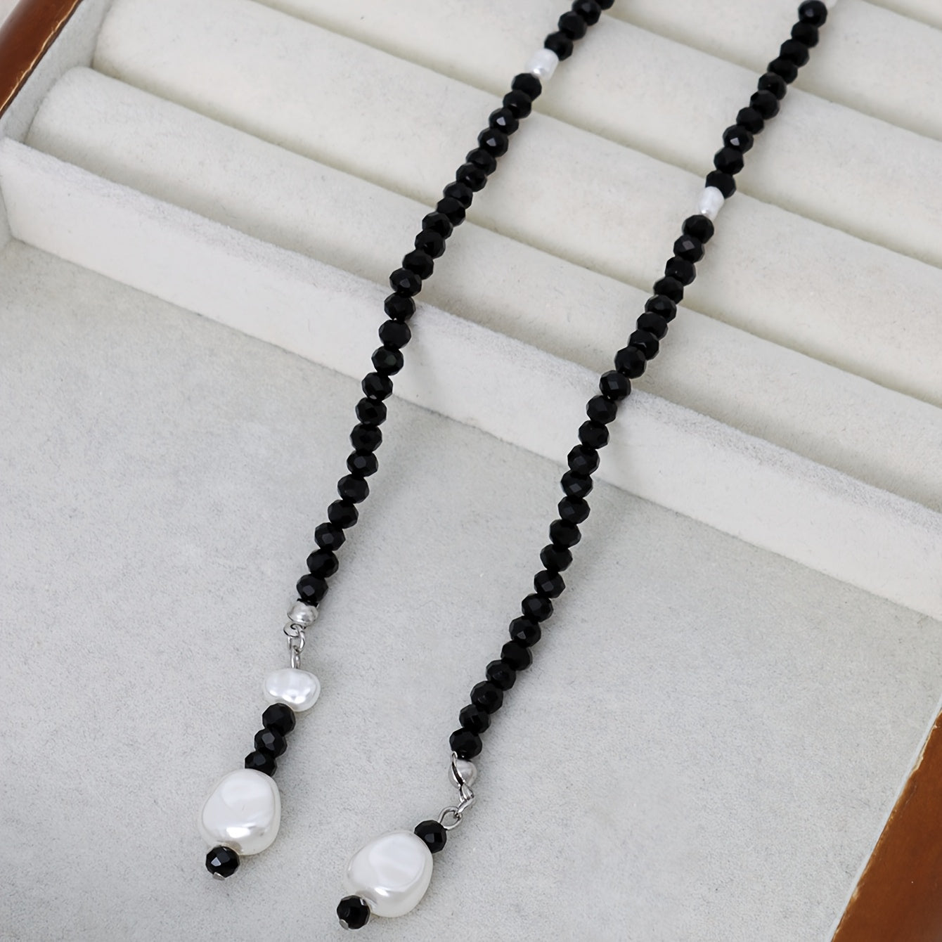 Elegant vintage style necklace handcrafted with faux crystal beads, perfect for daily wear or party occasions. Features an adjustable tie-on chain for versatile styling.
