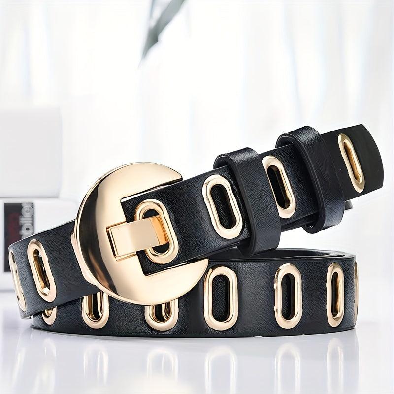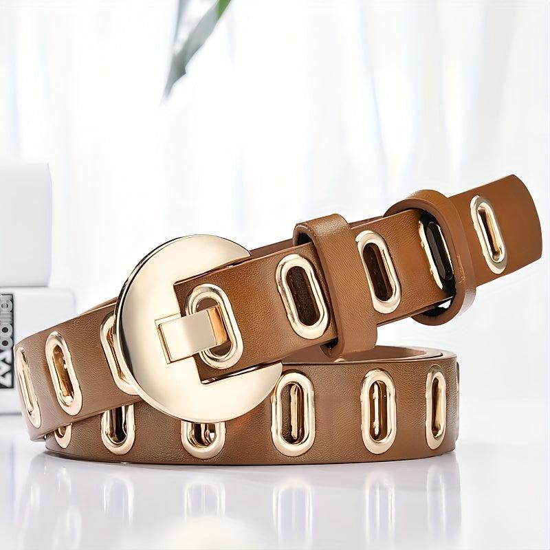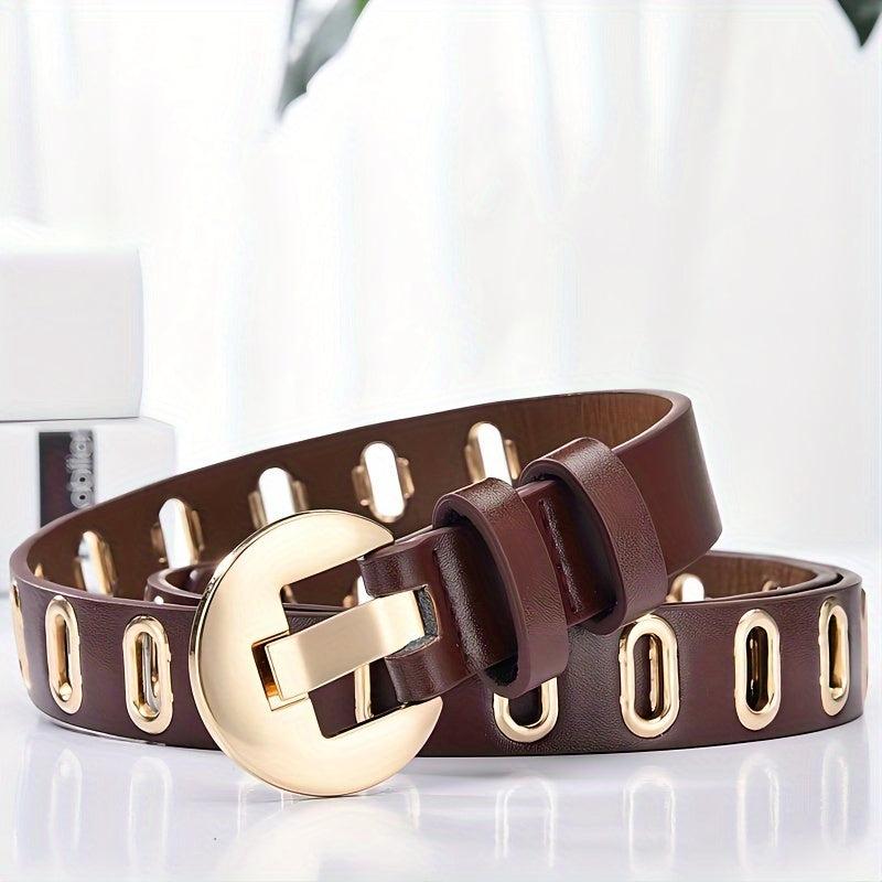 Enhance your outfit with this vintage style metal belt featuring a round pin buckle and hollow out design. Perfect for jeans and pants, it adds a touch of retro charm to your look.