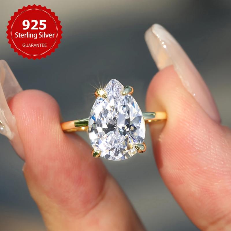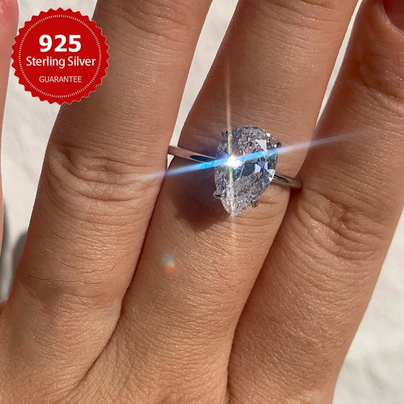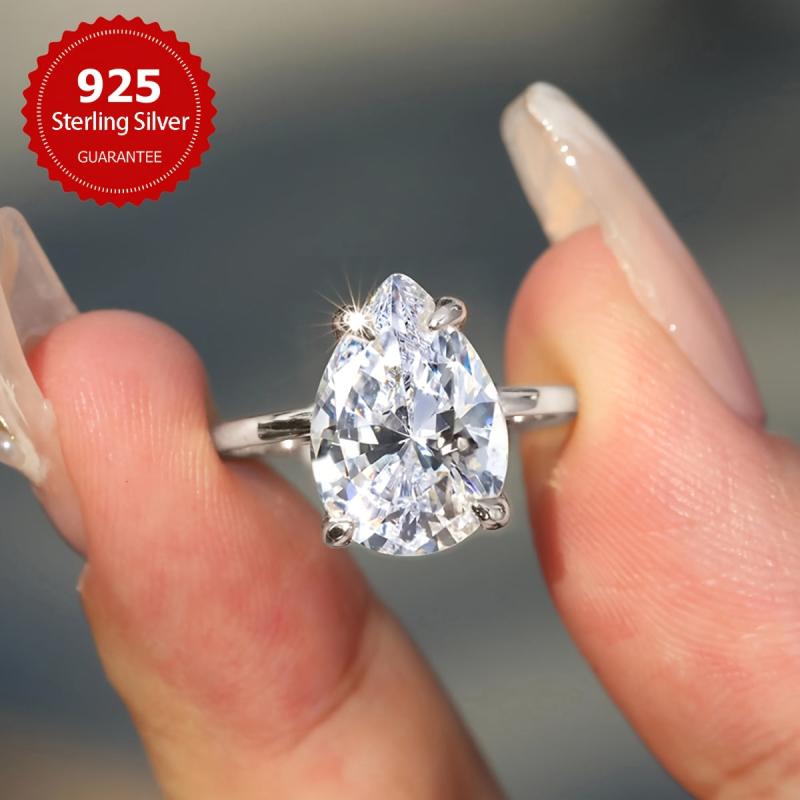 • 925 sterling silver ring with pear-shaped cubic zirconia