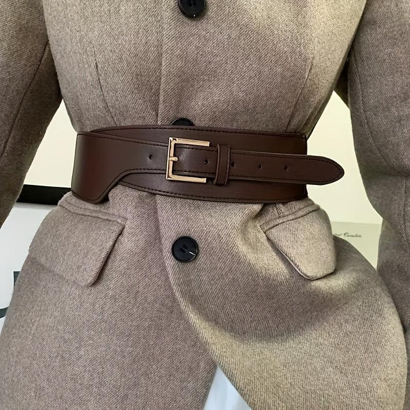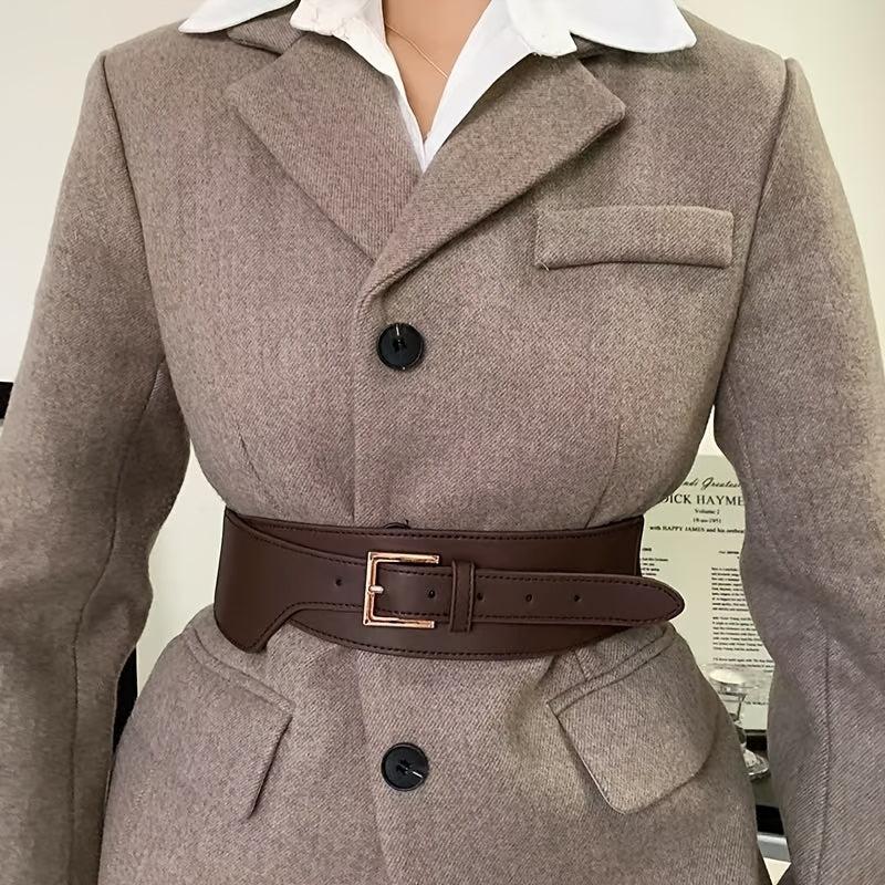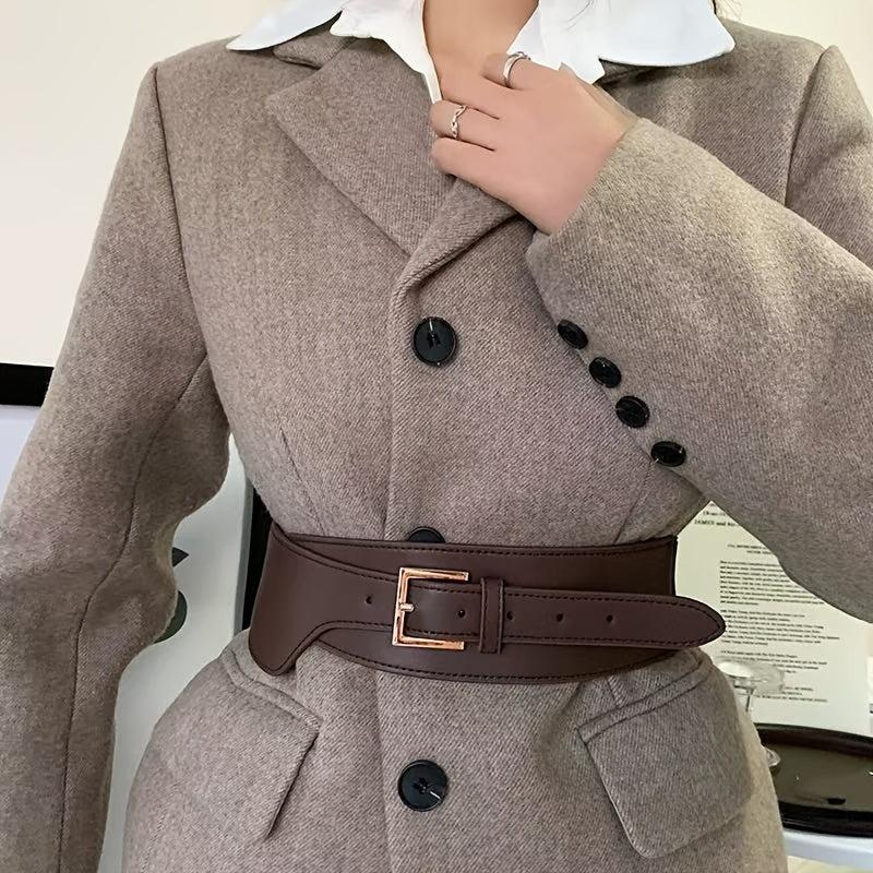Add a touch of vintage charm to your outfit with this classic brown waist belt. It's perfect for pairing with coats, suits, and sweaters, making it a versatile everyday accessory.