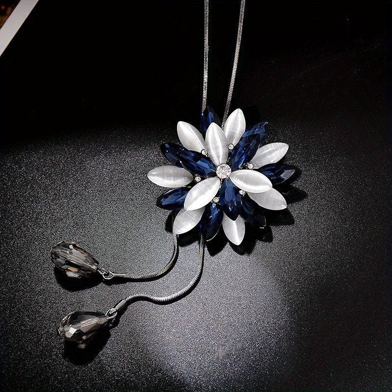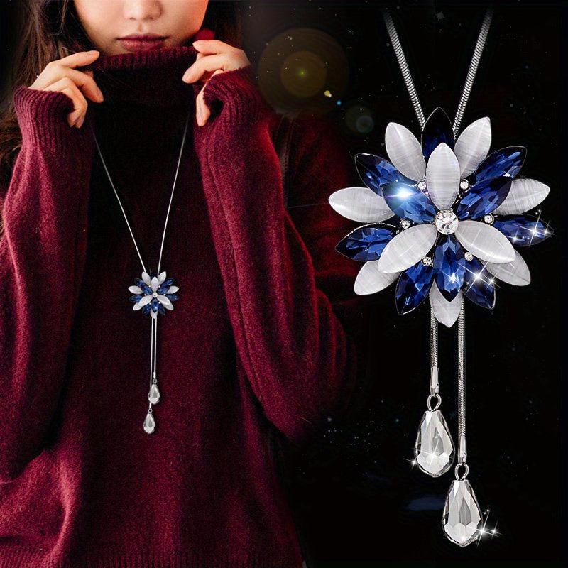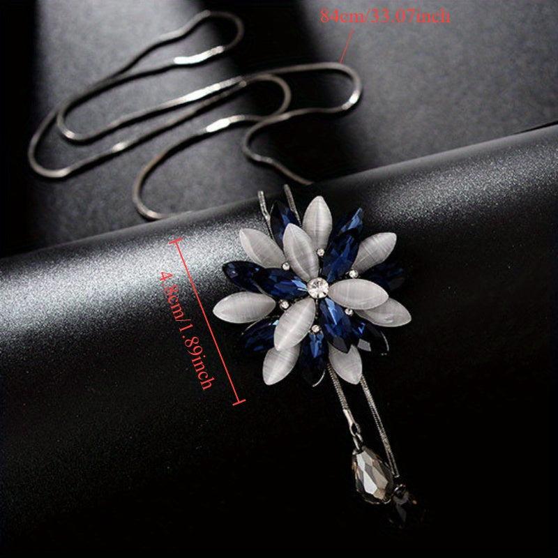 Elegant and timeless Y necklace featuring a layered flower pendant with rhinestone detail. Perfect for adding a touch of vintage charm to any outfit.