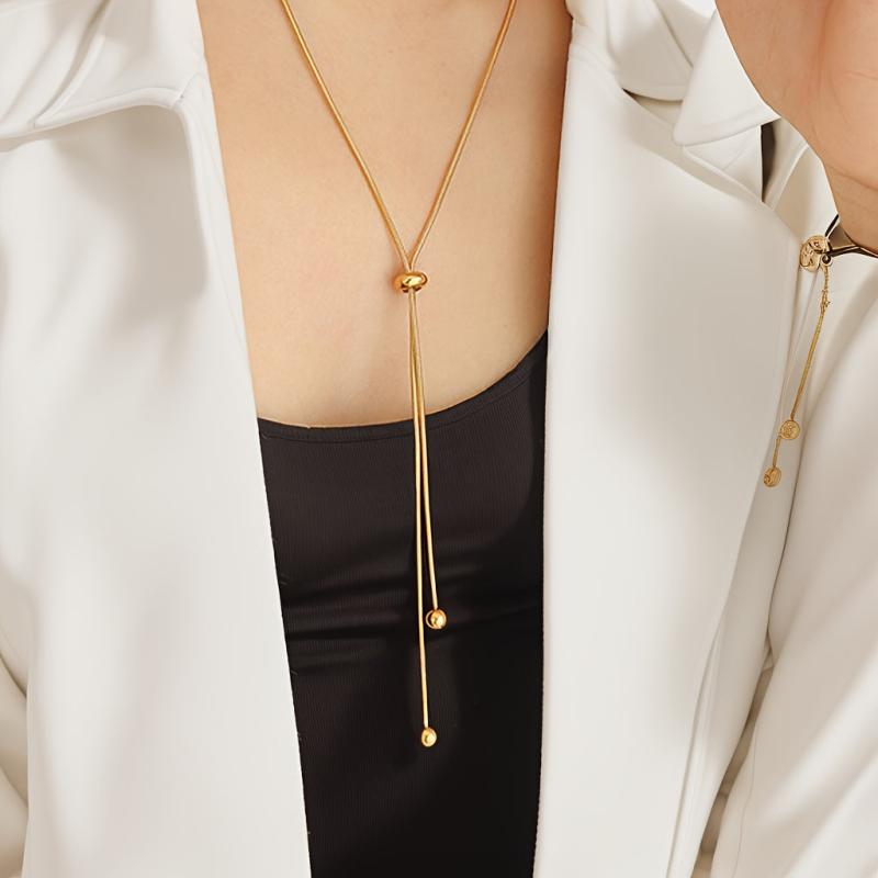 This stainless steel Y shaped necklace features a vintage design with 316L and 14K golden plating. Perfect for daily wear and gifting, this necklace is a versatile accessory for women.