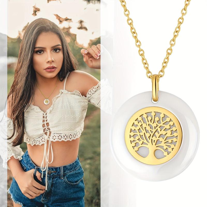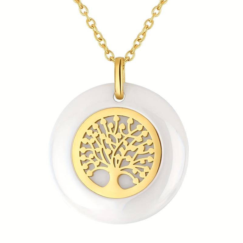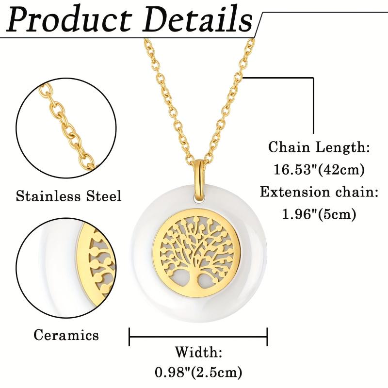 This beautiful Tree of Life necklace features a ceramic and stainless steel pendant with a golden tone finish. It makes a perfect everyday jewelry gift for Christmas, birthdays, and anniversaries.