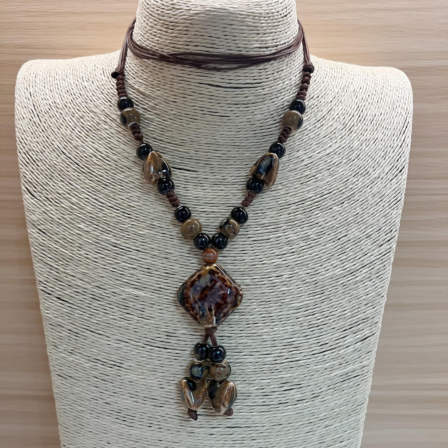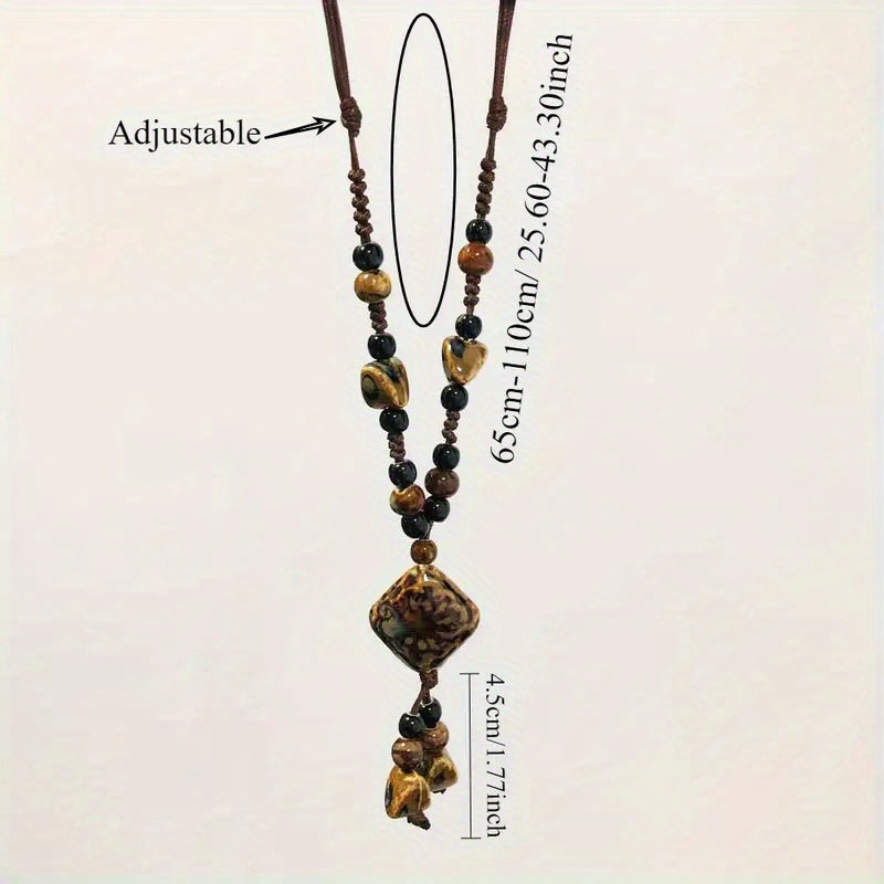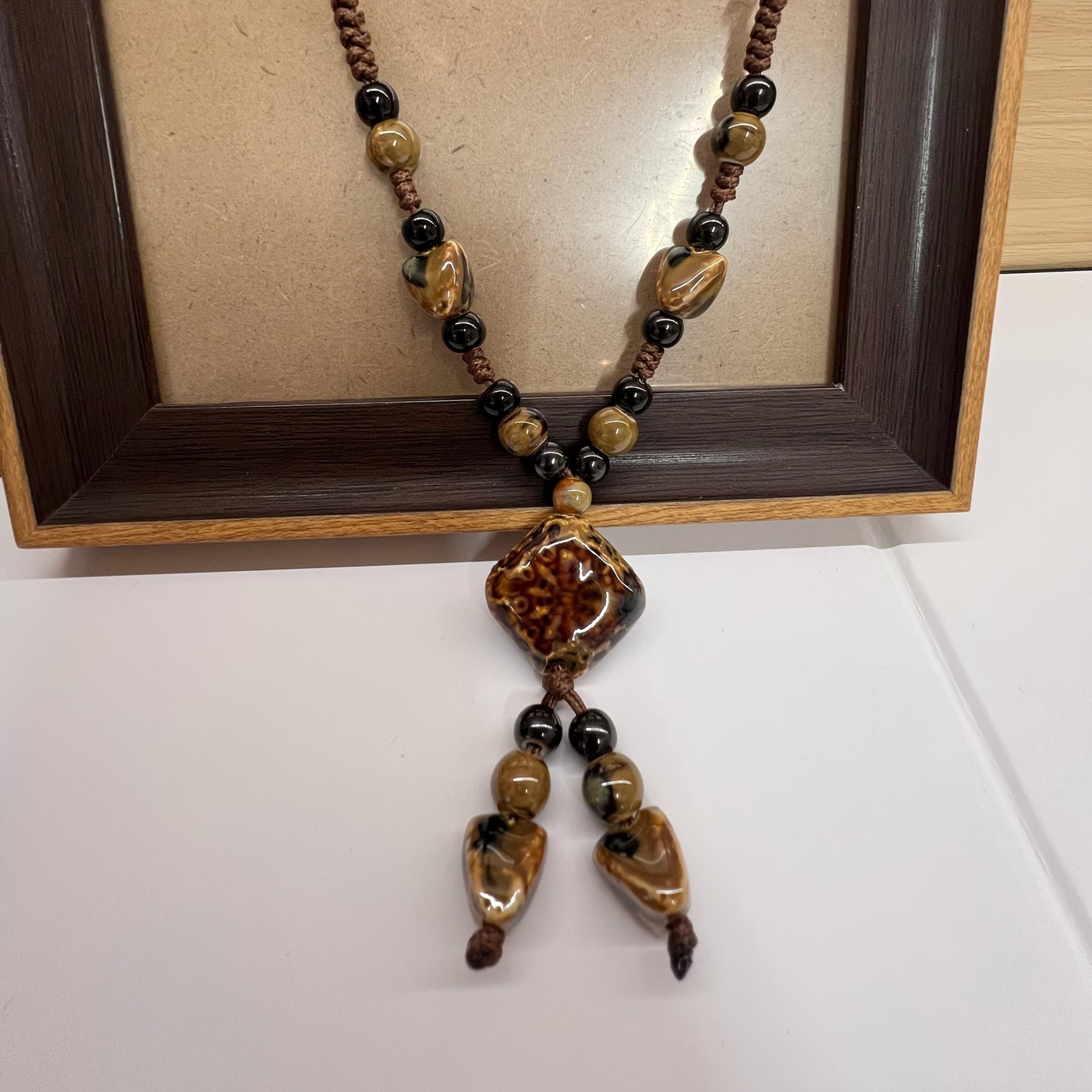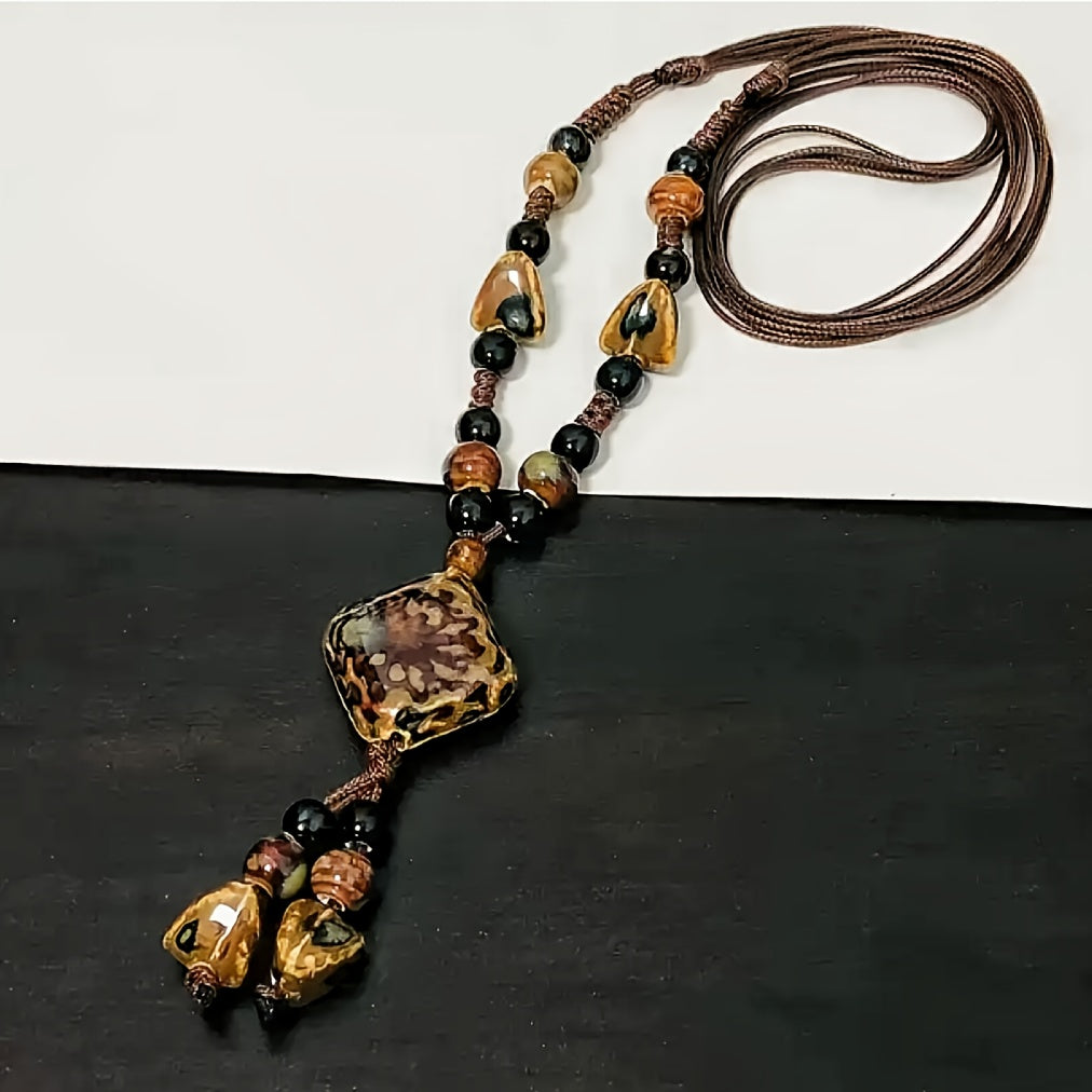 Vintage Tribal Style Ceramic Long Necklace Adjustable Length