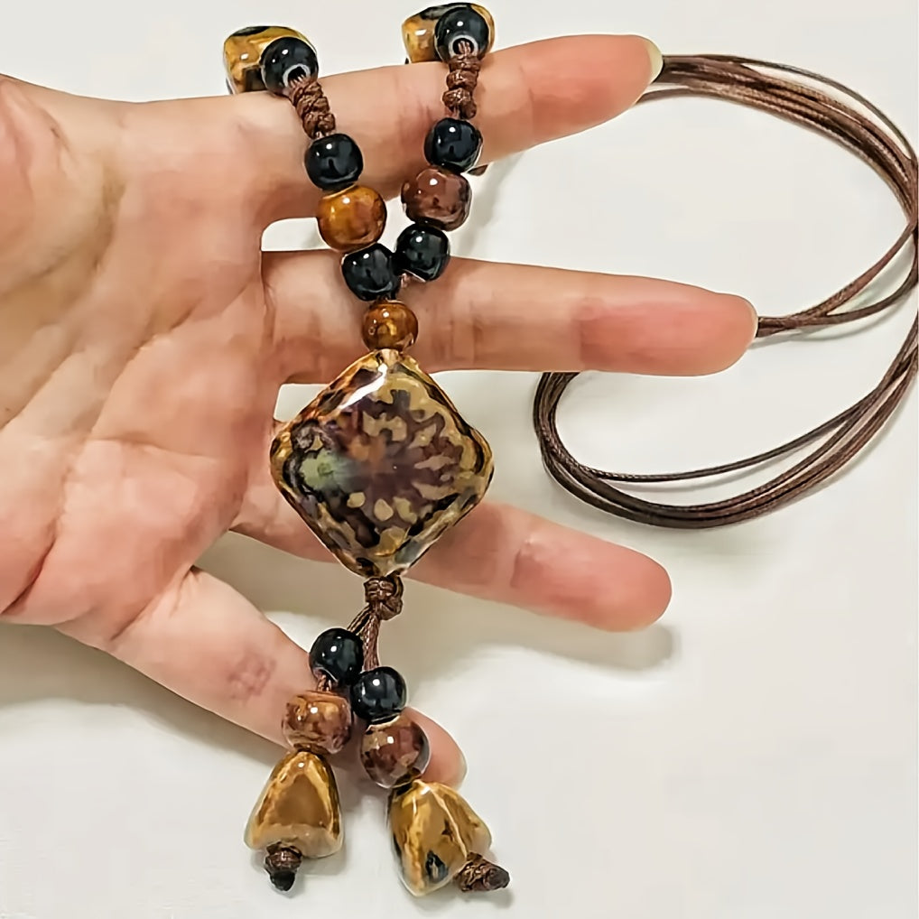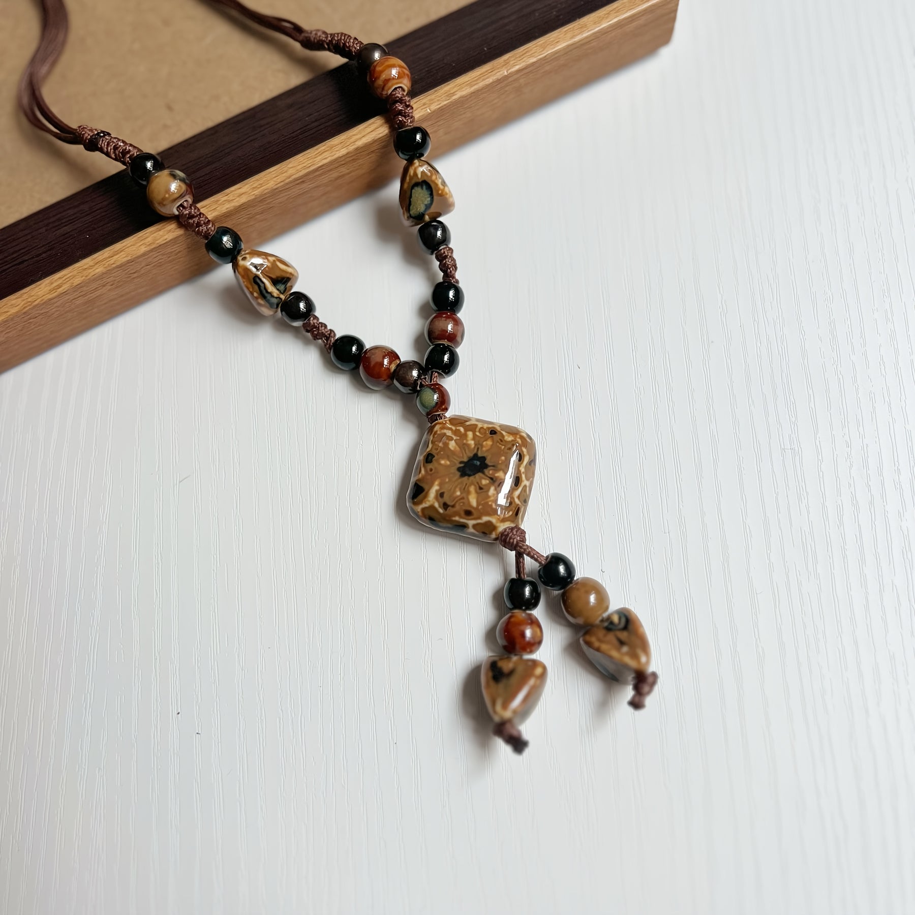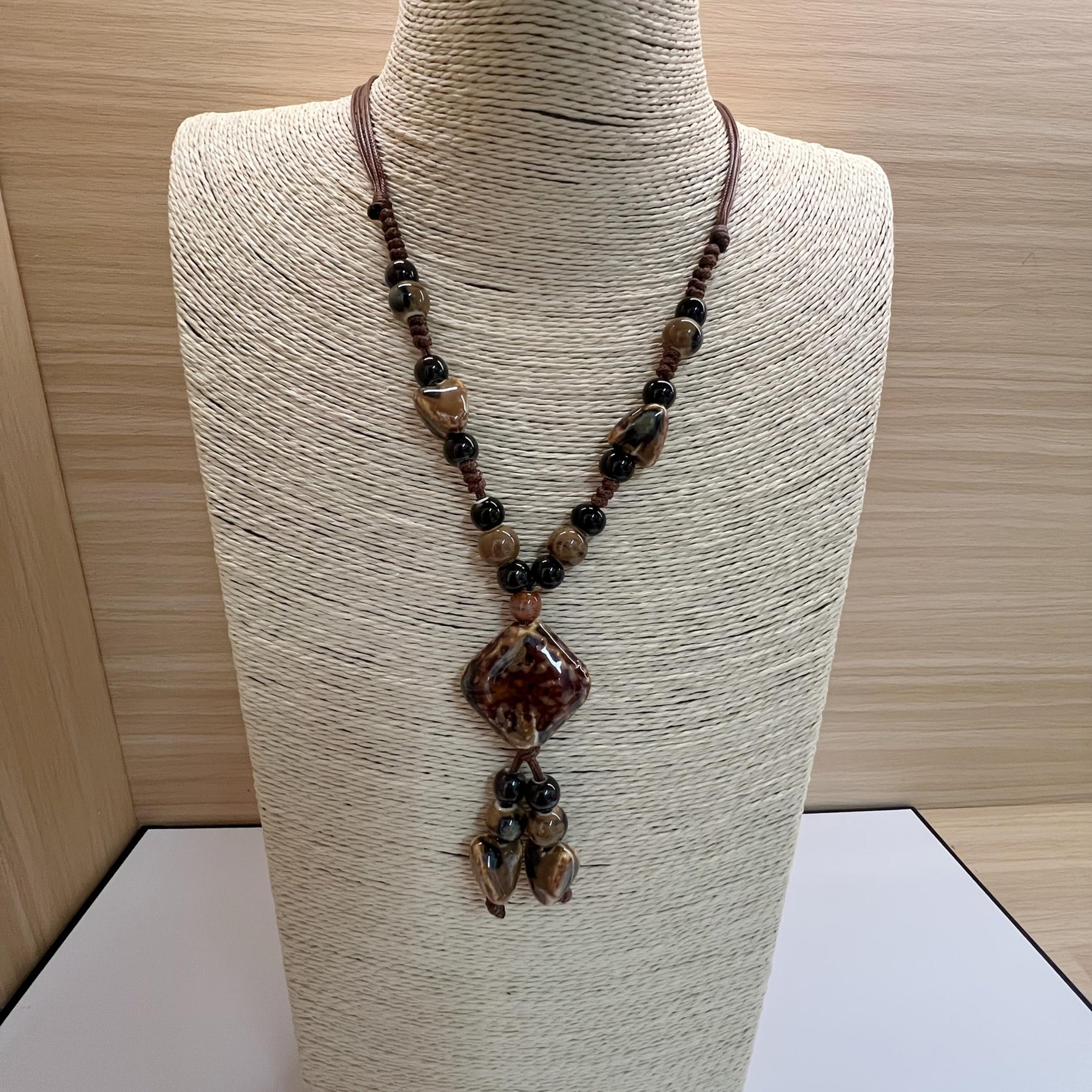 Vintage Tribal Style Ceramic Long Necklace Adjustable Length