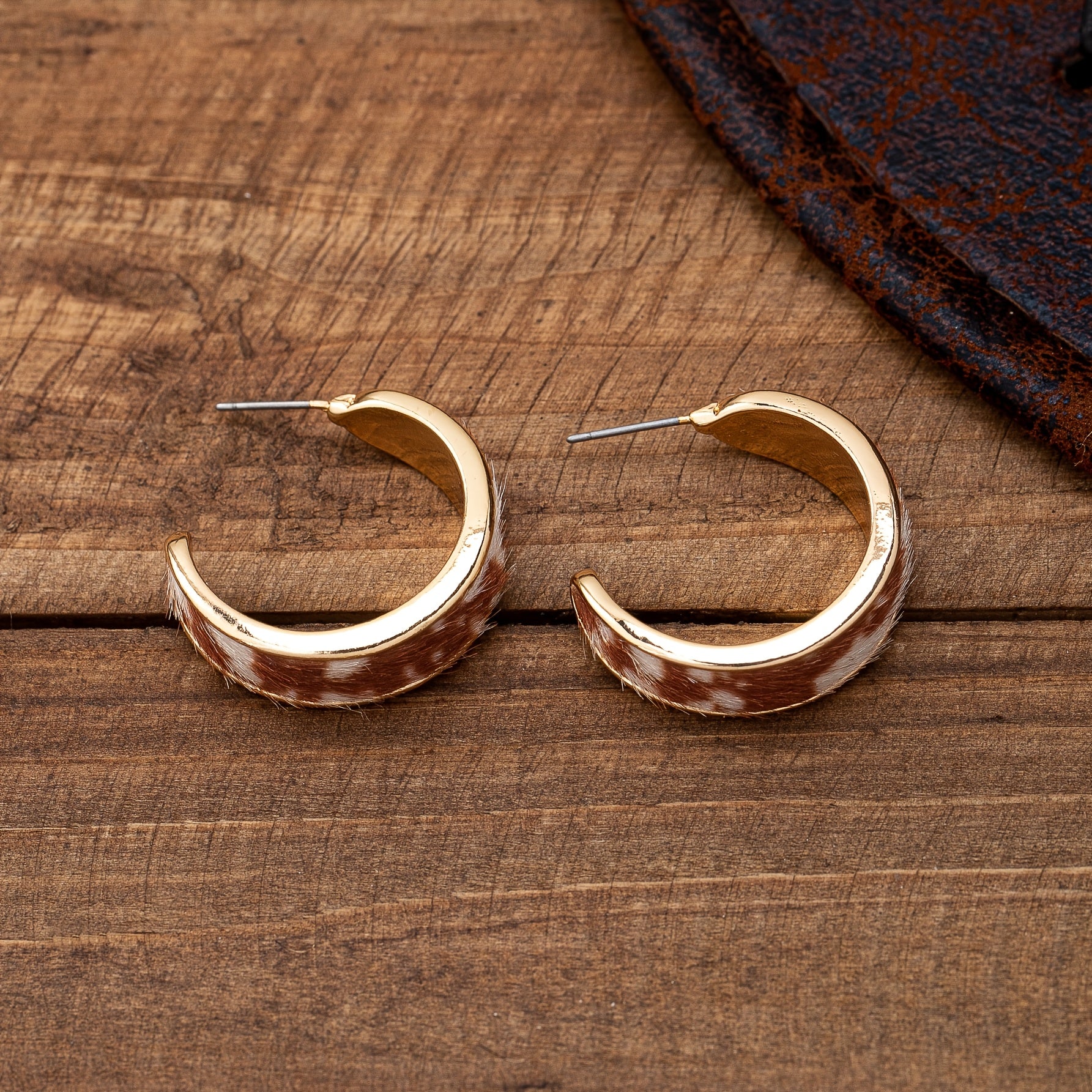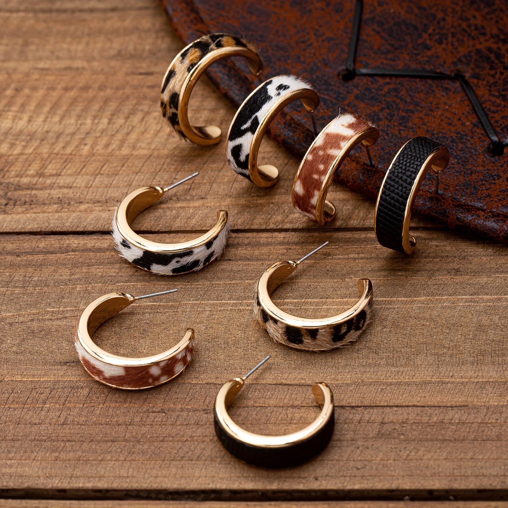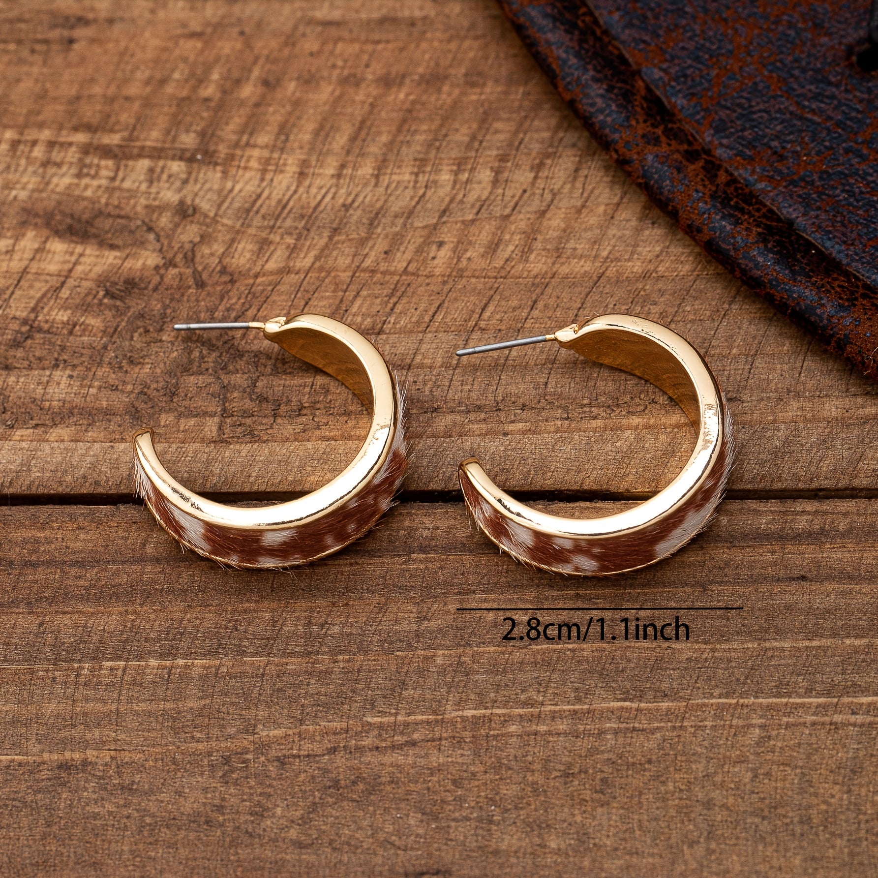 Add a touch of cowboy style to your outfit with these vintage Western-inspired hoop earrings. Featuring leopard and cow prints, these C-shaped earrings are made with 14K golden plated zinc alloy and stainless steel.