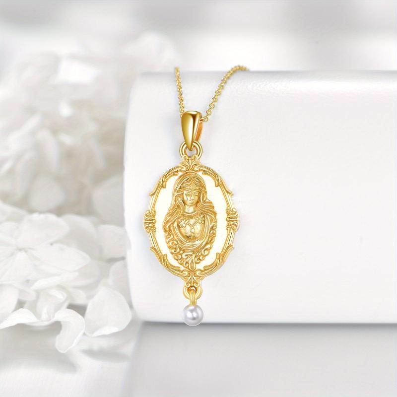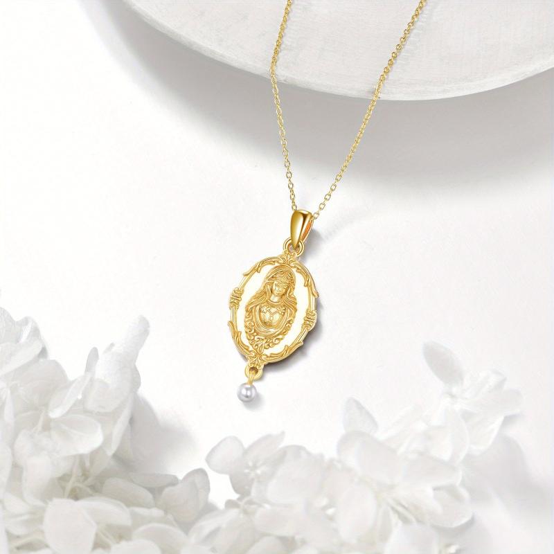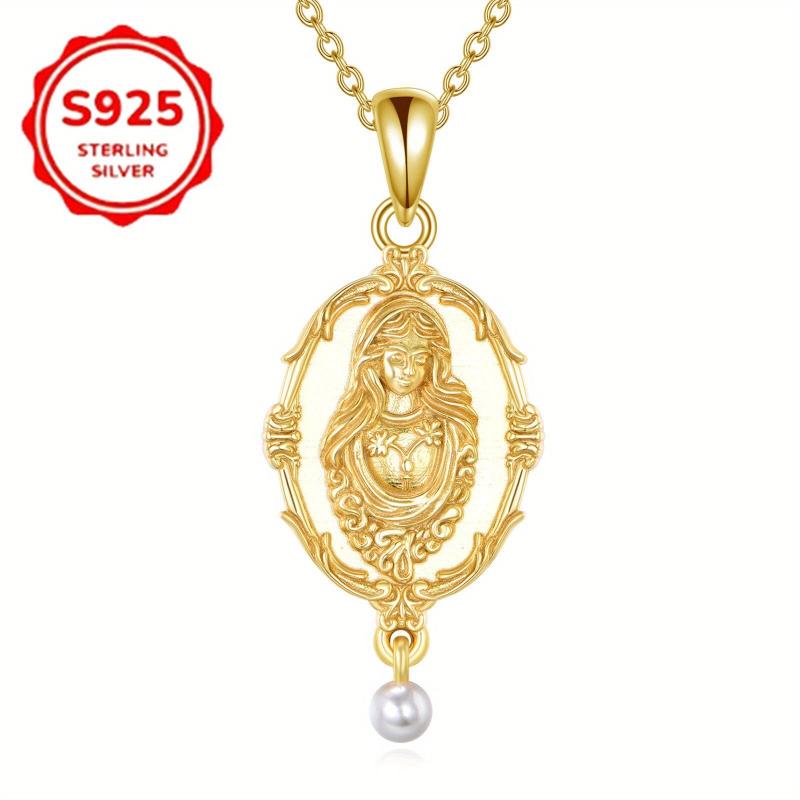 This elegant necklace features a Virgin Mary pendant made of 925 sterling silver with golden plating. Perfect for birthdays, holy communions, or everyday wear.