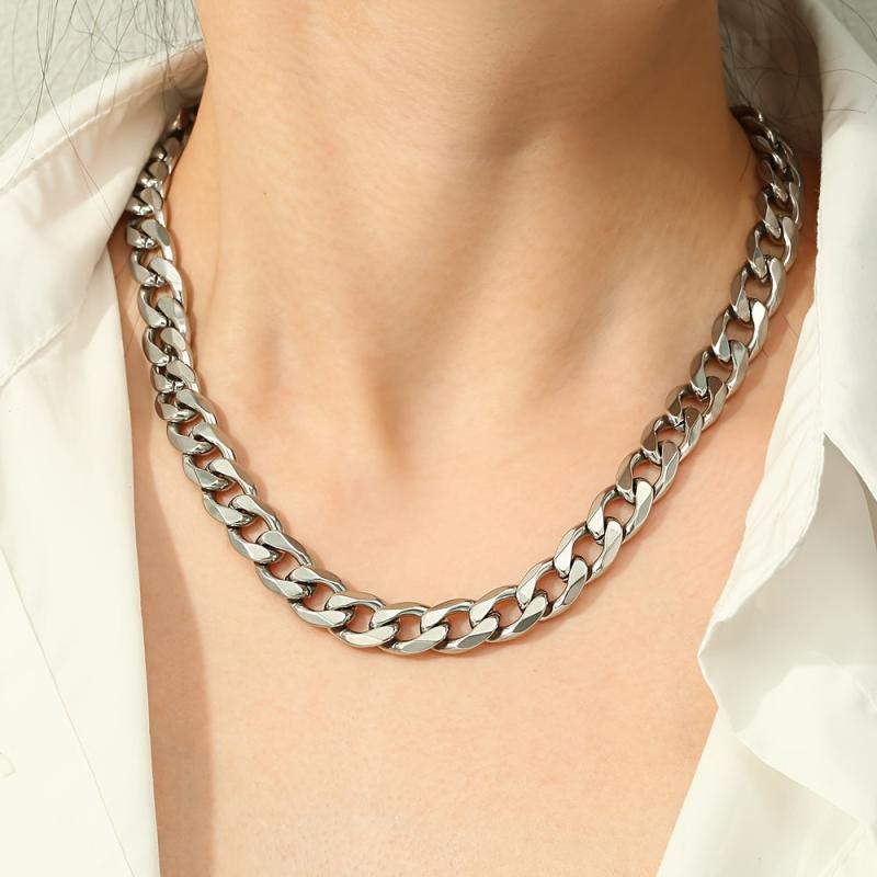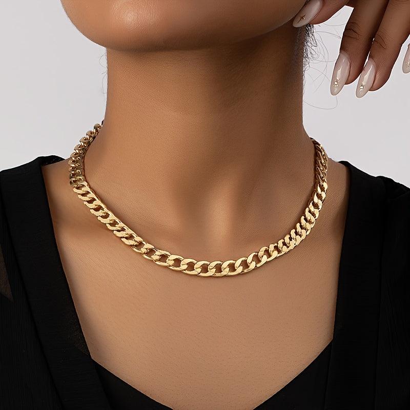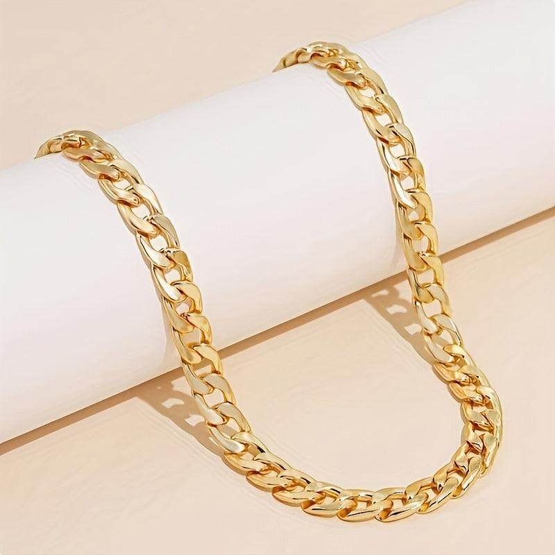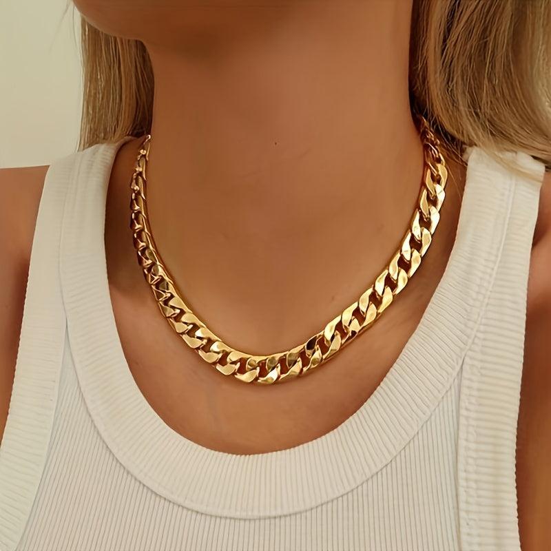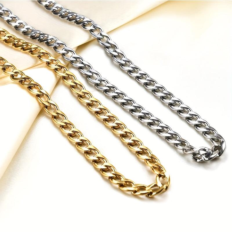 Elevate your party look with this golden tone stainless steel cuban chain necklace. It's perfect for vacations, festivals, and year-round wear.