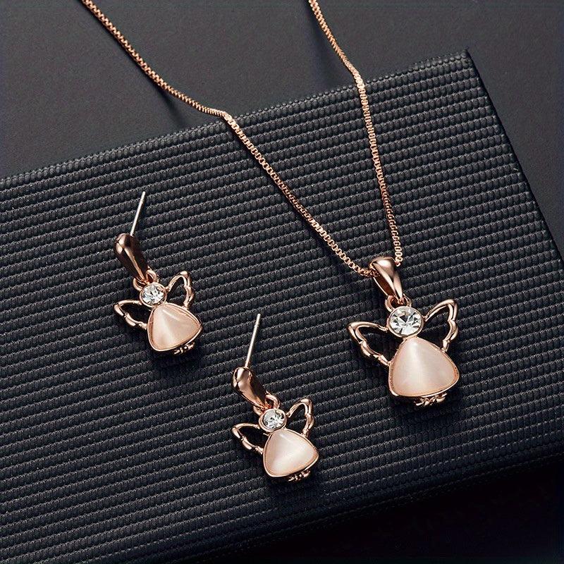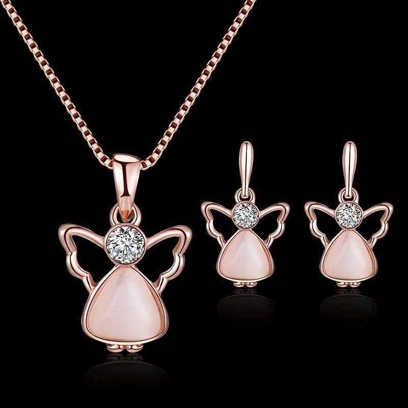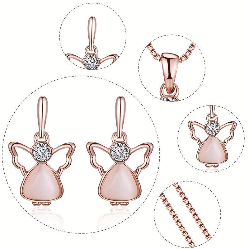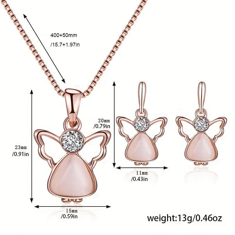 This beautiful two-piece jewelry set is perfect for gifting to your mother, girlfriend, or for birthdays, weddings, or special occasions. The necklace and earrings feature angel wing design with cat eye stones and rhinestone accents.