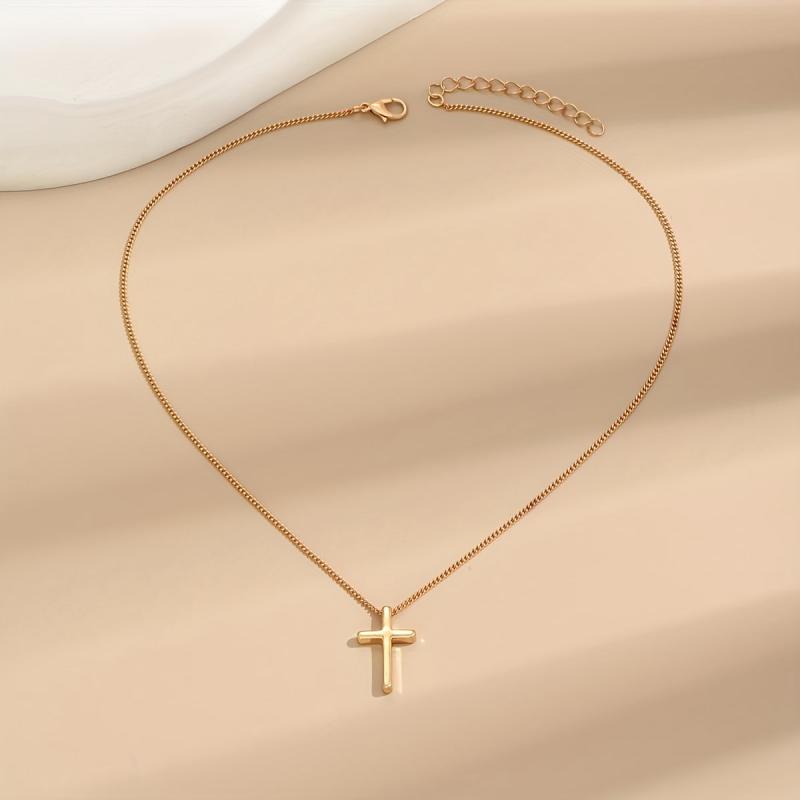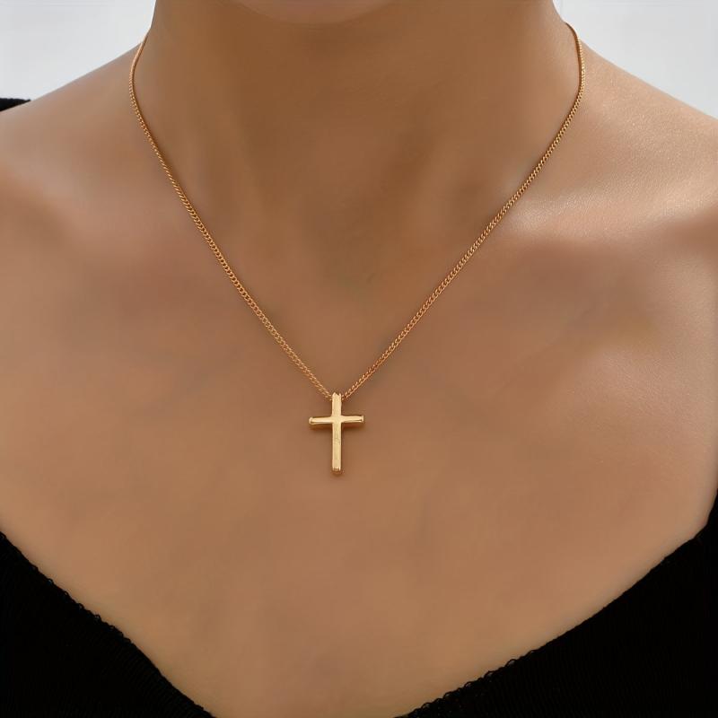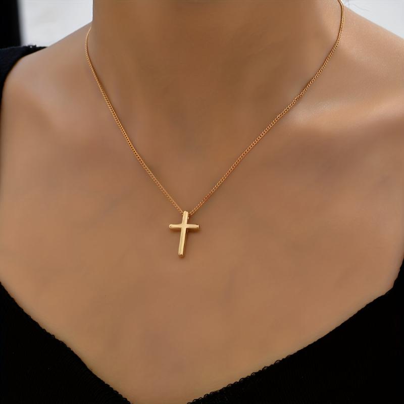 This minimalist necklace features a golden tone cross pendant on a delicate chain, perfect for everyday wear. It can be styled casually or formally, making it a versatile jewelry piece that can be worn year-round. The timeless design adds a touch of elegance to any outfit.