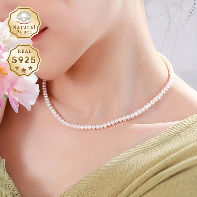 Add a touch of elegance to any outfit with this natural freshwater pearls necklace featuring 4.5mm pearls on a S925 silver chain.