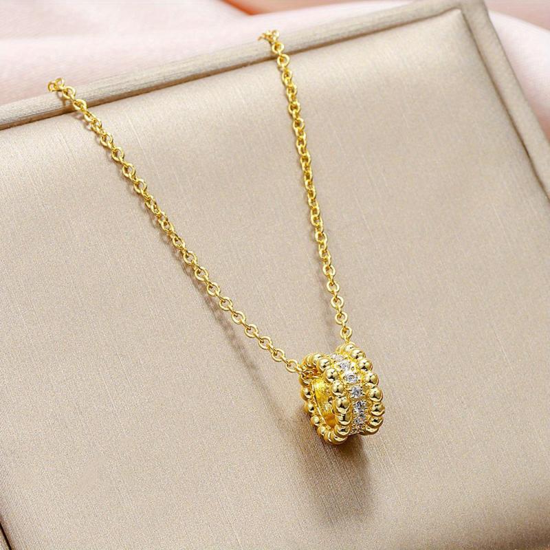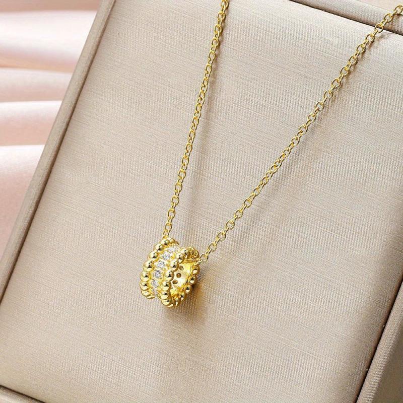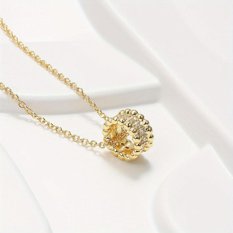 This necklace features interlocking rings in a golden tone, creating an edgy and modern look. It is perfect for parties and casual attire, adding a touch of style to any outfit. The durable design makes it ideal for layering with other jewelry pieces.