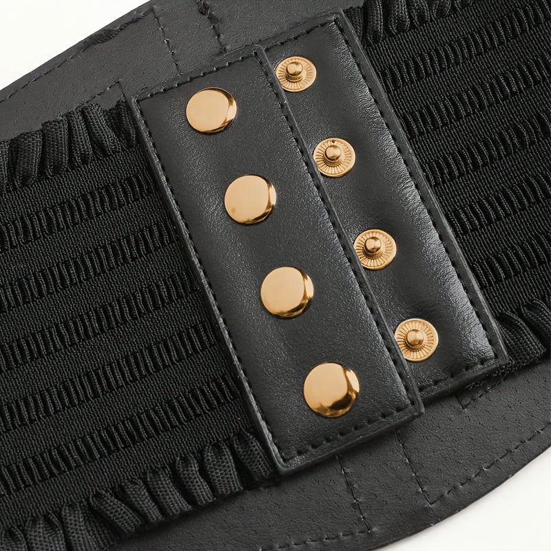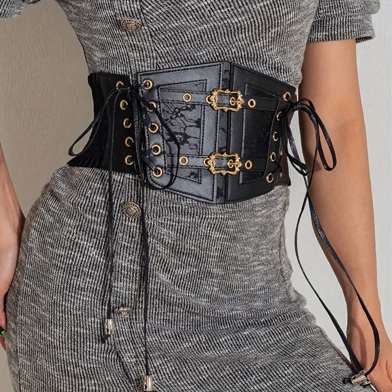 Add a touch of retro-inspired style to your look with this lace mesh waistband featuring golden buckles and adjustable straps. Perfect for daily commute, weddings, parties, and more.