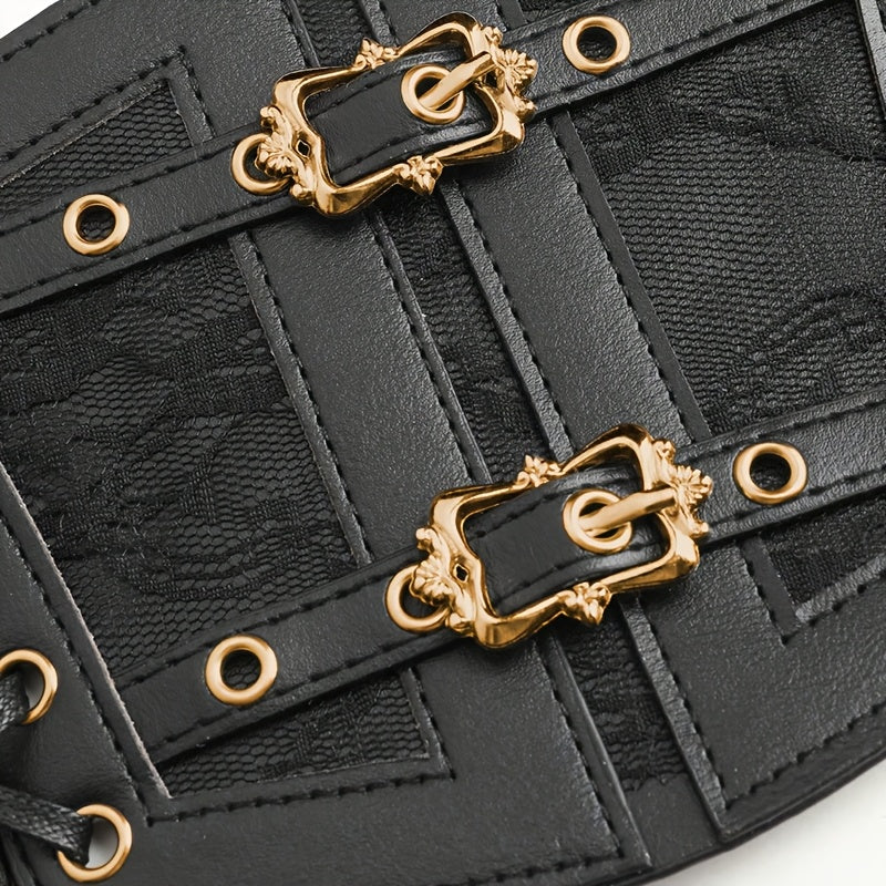 Women's Lace Mesh Waistband w/ Golden Buckles & Adjustable Straps