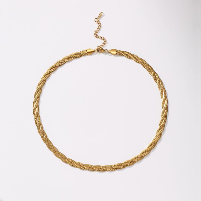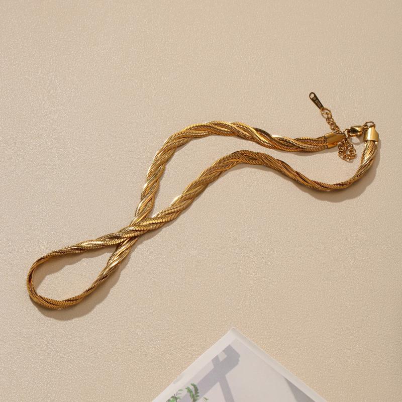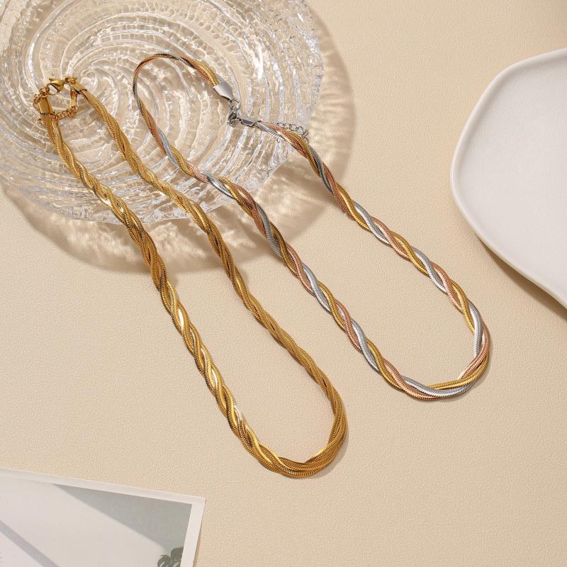 This stylish women's necklace features a three-layer design with braided snake bone pattern. Made of high-quality stainless steel, it is hypoallergenic and suitable for parties, birthdays, and beach outings.