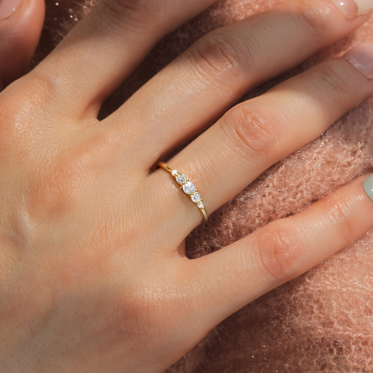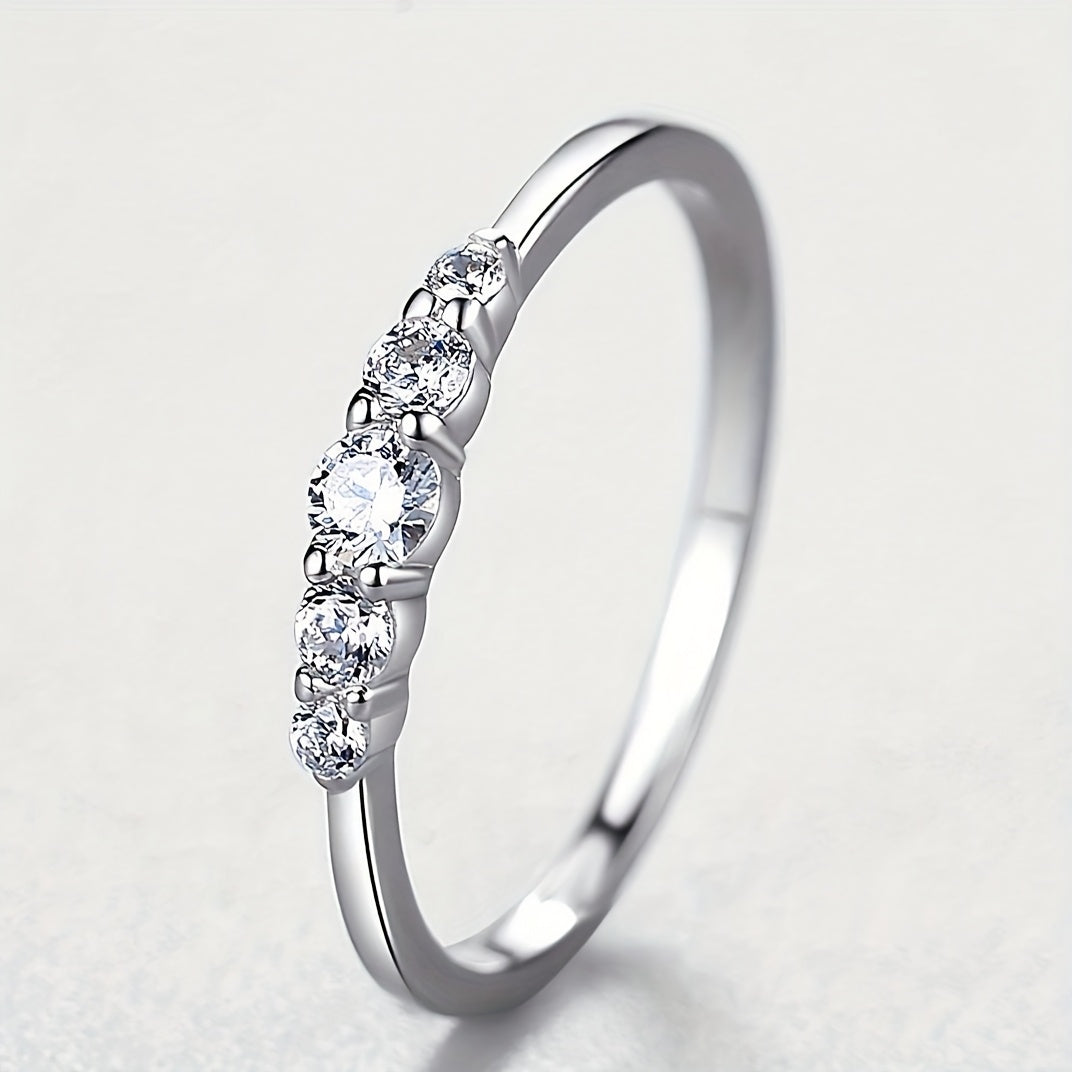 This elegant five stone ring is the perfect choice for a wedding or anniversary. Made of s925 sterling silver, it features synthetic gemstones that sparkle beautifully. A great gift for birthdays or Mother's Day.