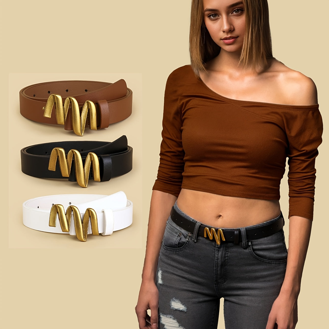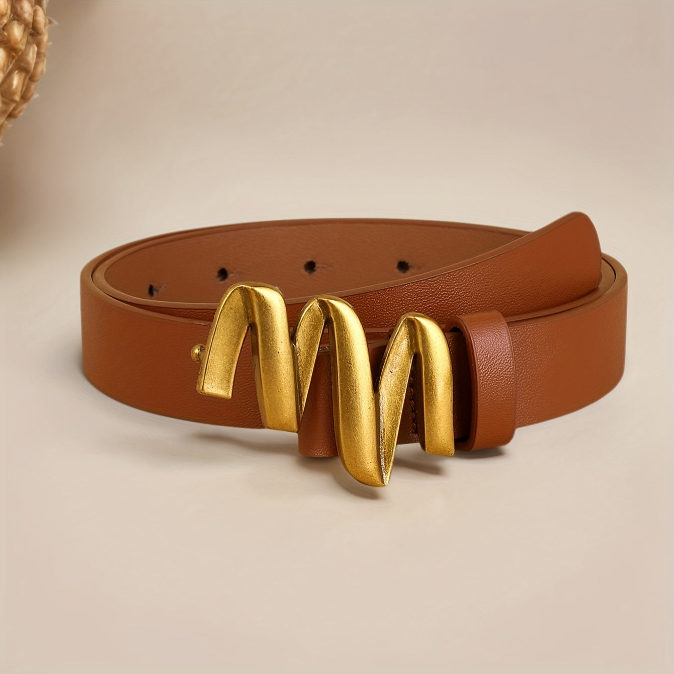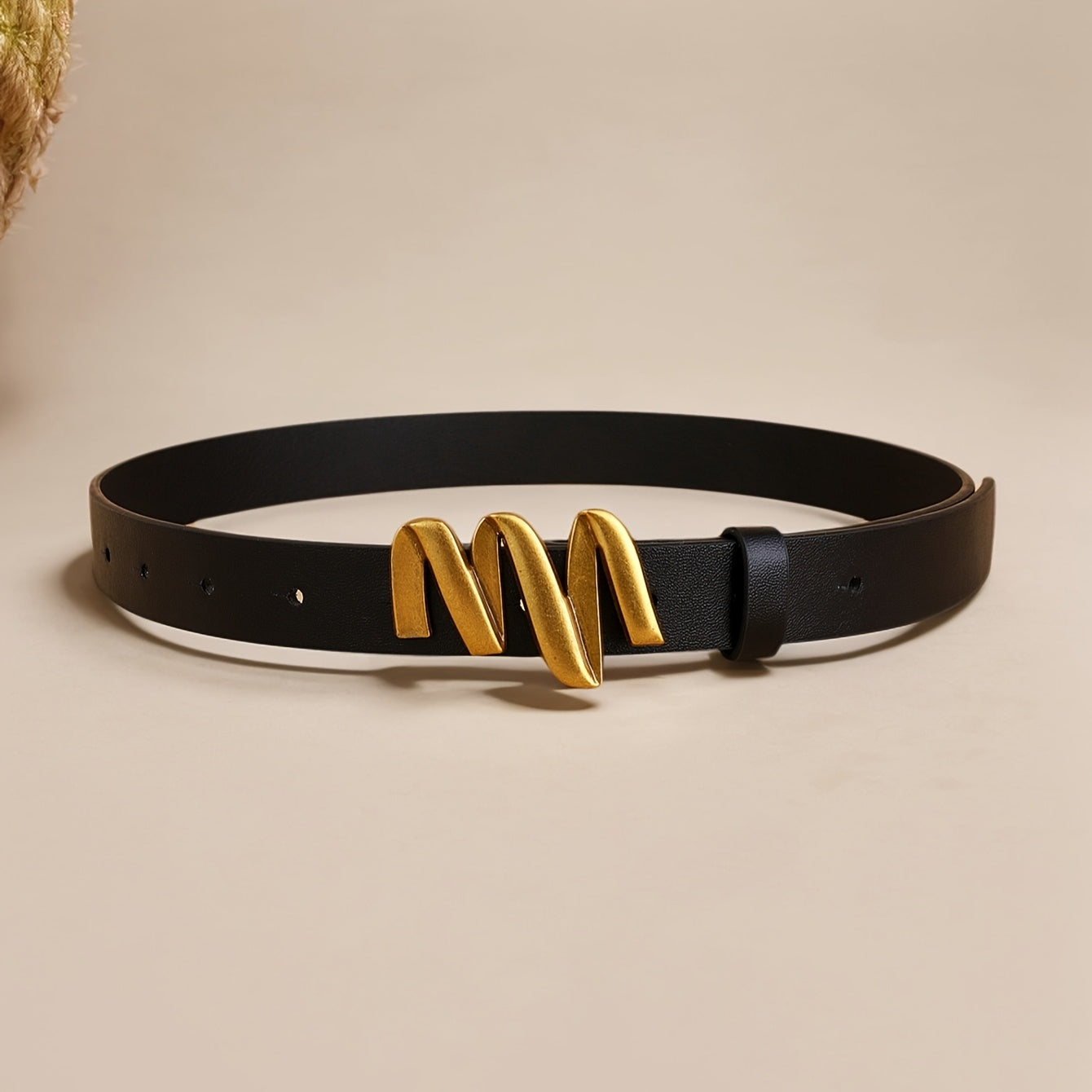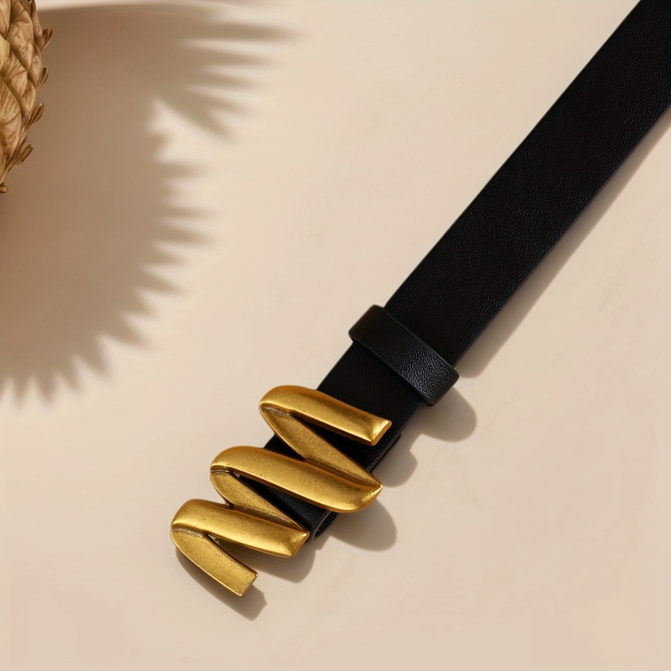Add a touch of vintage charm to your outfits with this wave-shaped metallic buckle belt. Made of high-quality PU leather, it is adjustable and perfect for cinching your waist with style. Suitable for all seasons and can be paired with jeans or dresses.