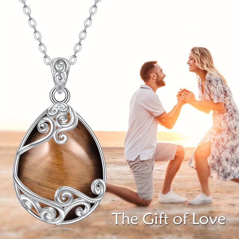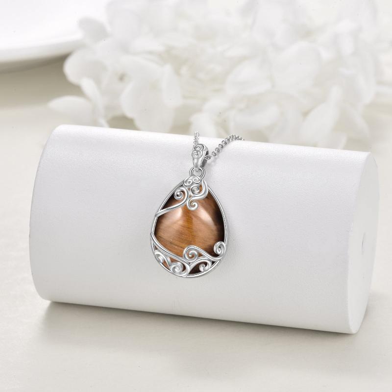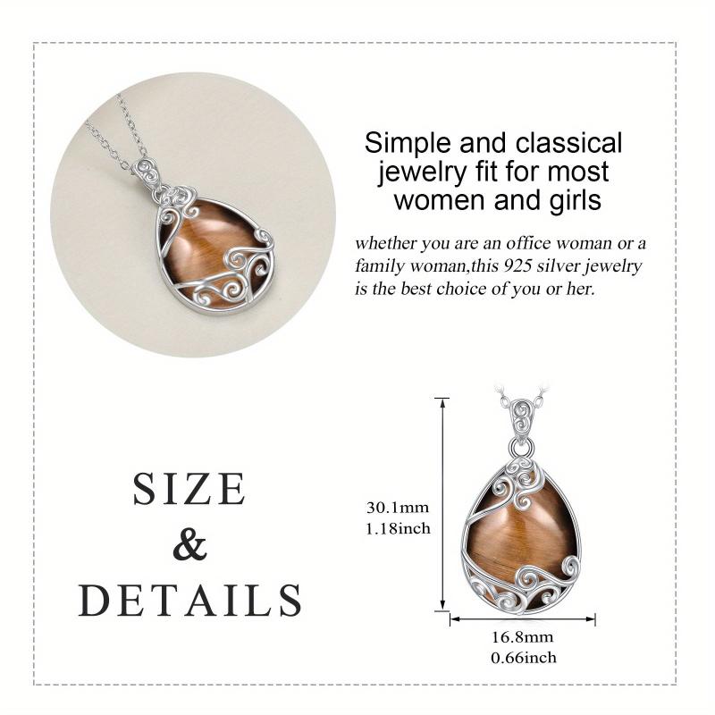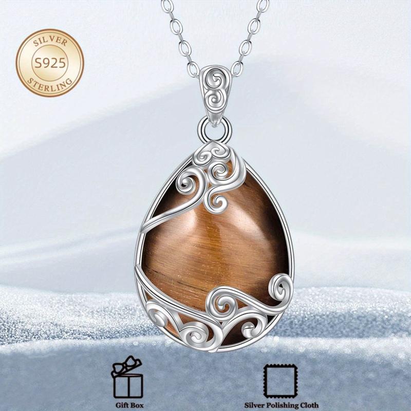 YAFEINI Sterling Silver Tiger's Eye Pendant Necklace