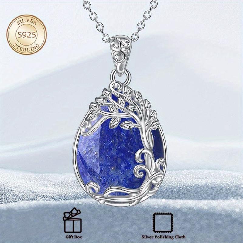 This adjustable chain necklace features a stunning Tree of Life design, with a lapis lazuli inlaid pendant. Made of 925 sterling silver, it is a perfect accessory for both women and men.